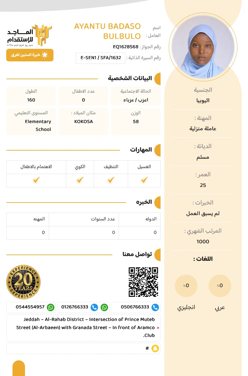 المهنة : عاملة منزلية