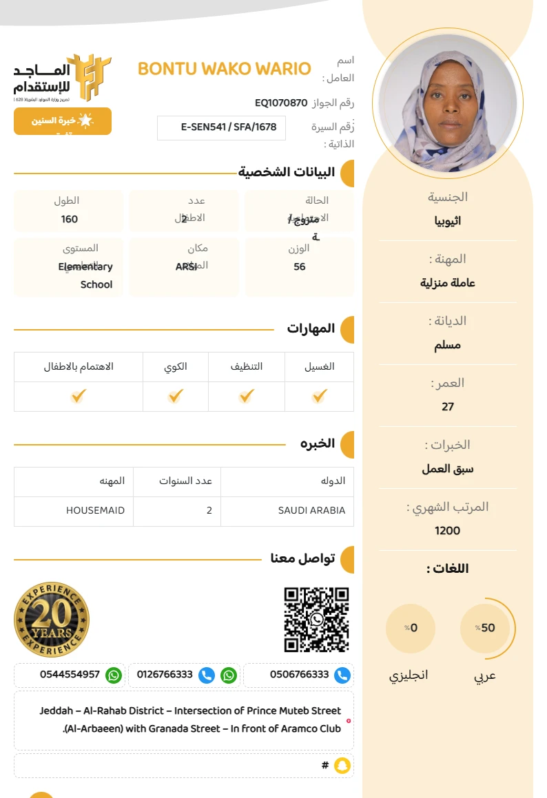 تنويه : يتم سداد تكاليف الاستقدام عن طريق منصة مساند