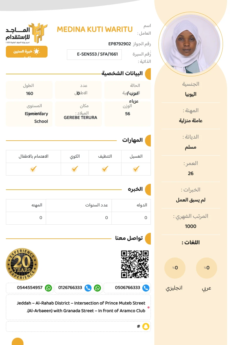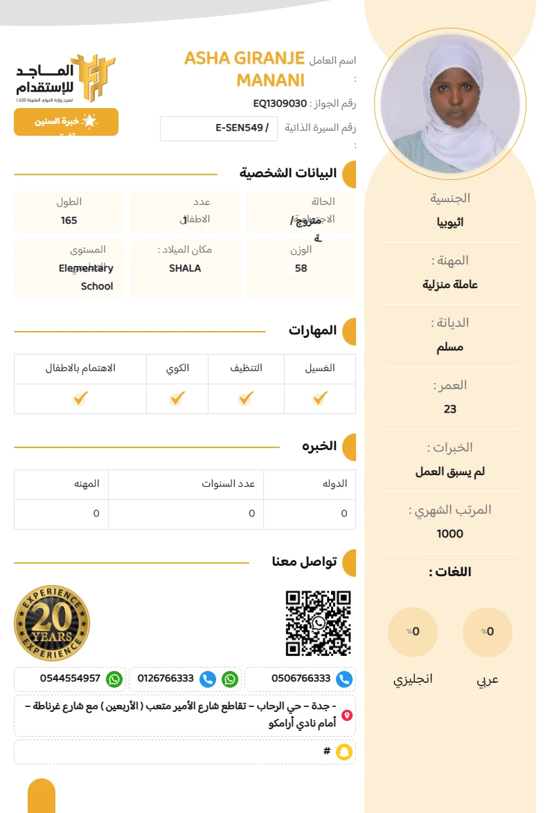 تنويه : يتم سداد تكاليف الاستقدام عن طريق منصة مساند
