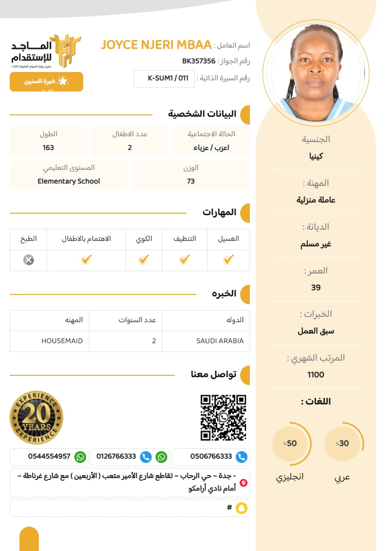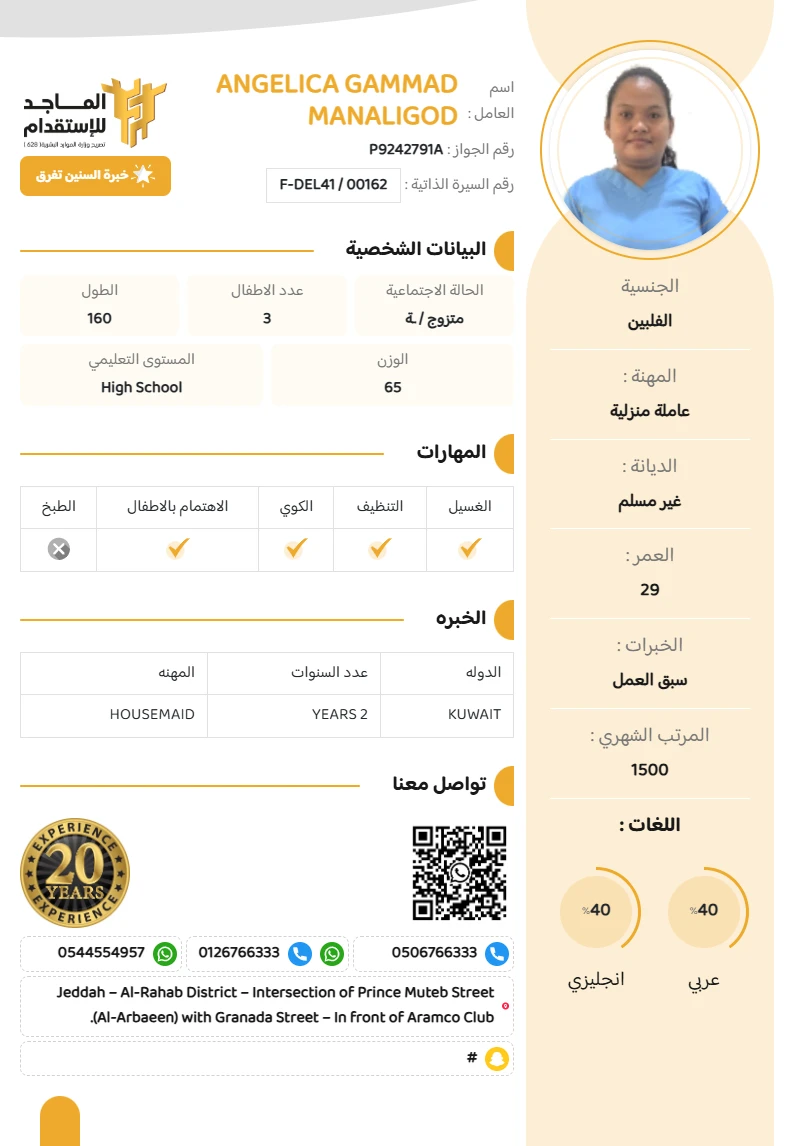 تنويه : يتم سداد تكاليف الاستقدام عن طريق منصة مساند