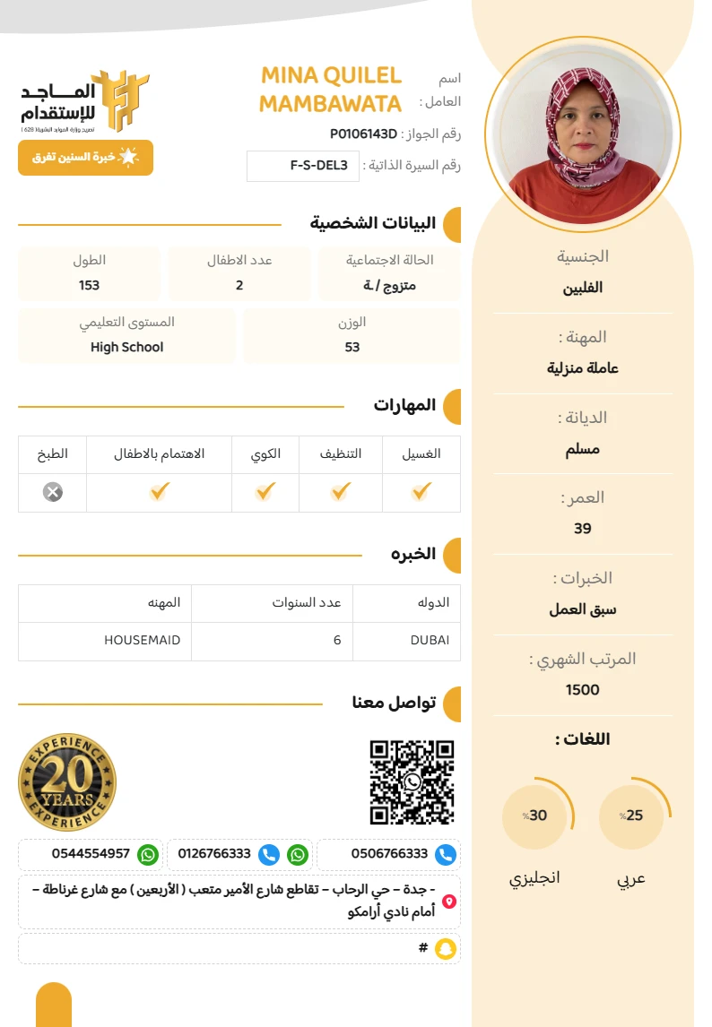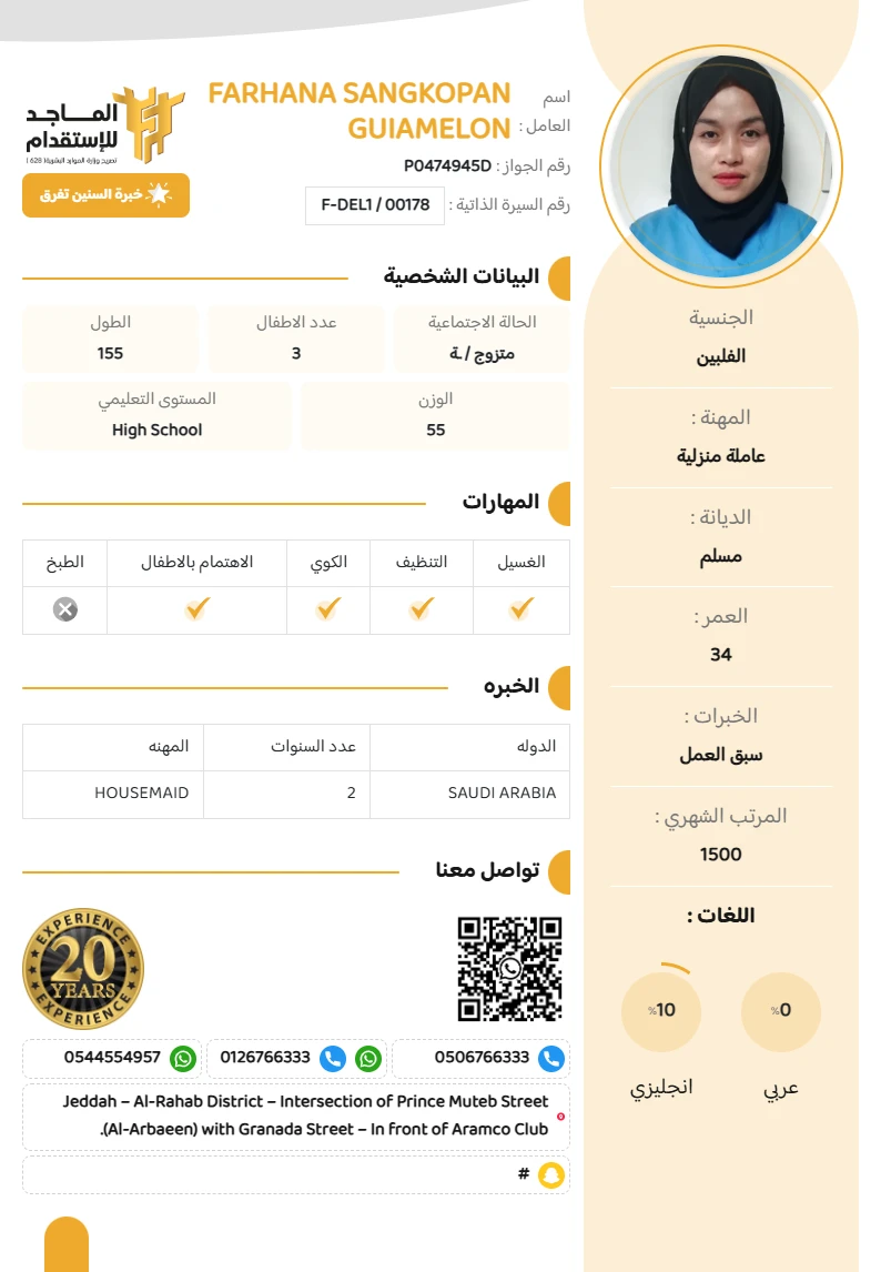 تنويه : يتم سداد تكاليف الاستقدام عن طريق منصة مساند