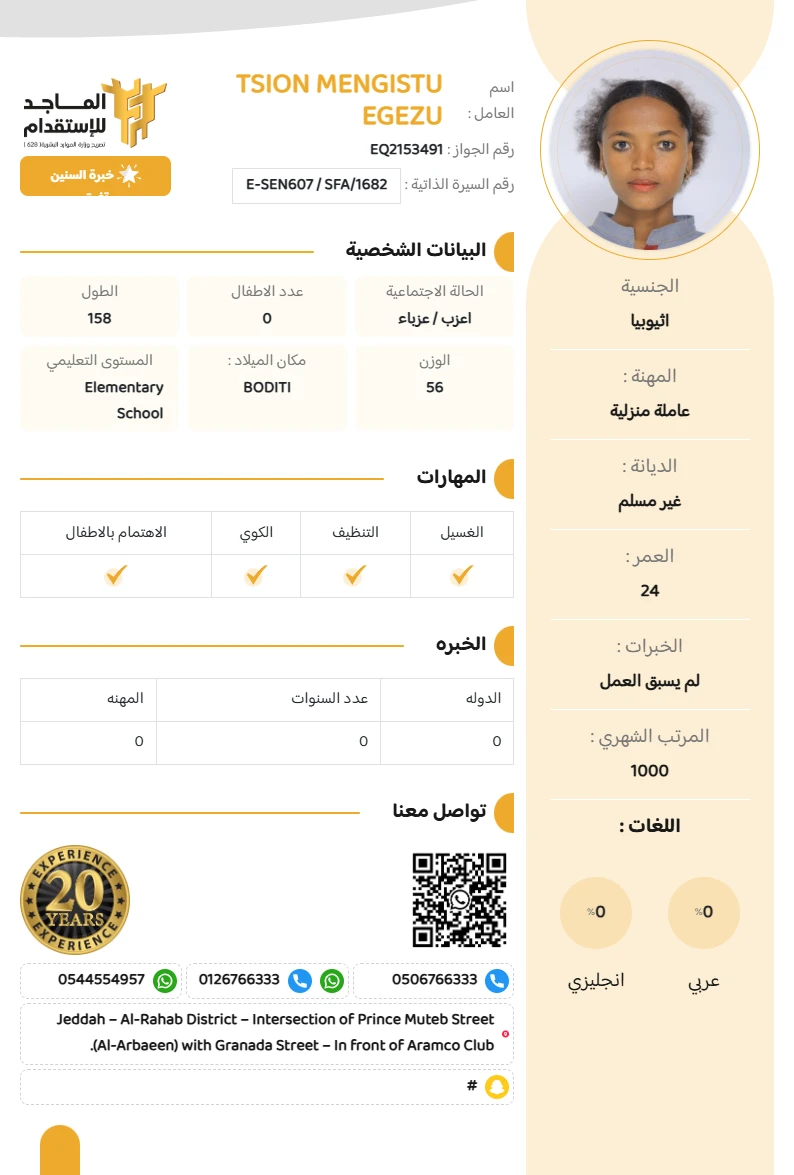 تنويه : يتم سداد تكاليف الاستقدام عن طريق منصة مساند