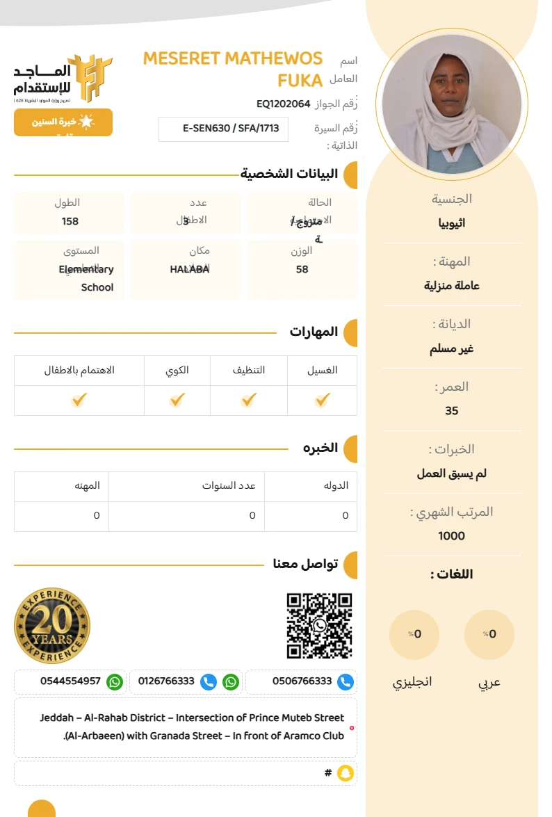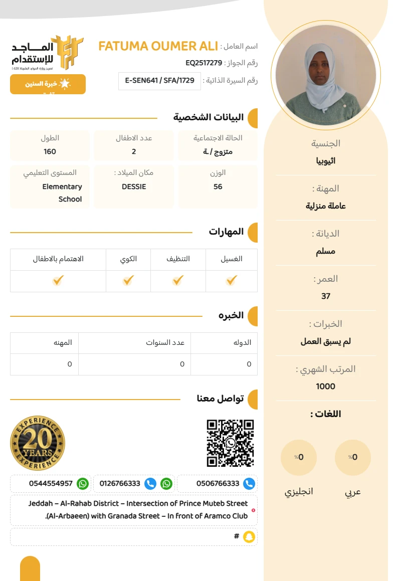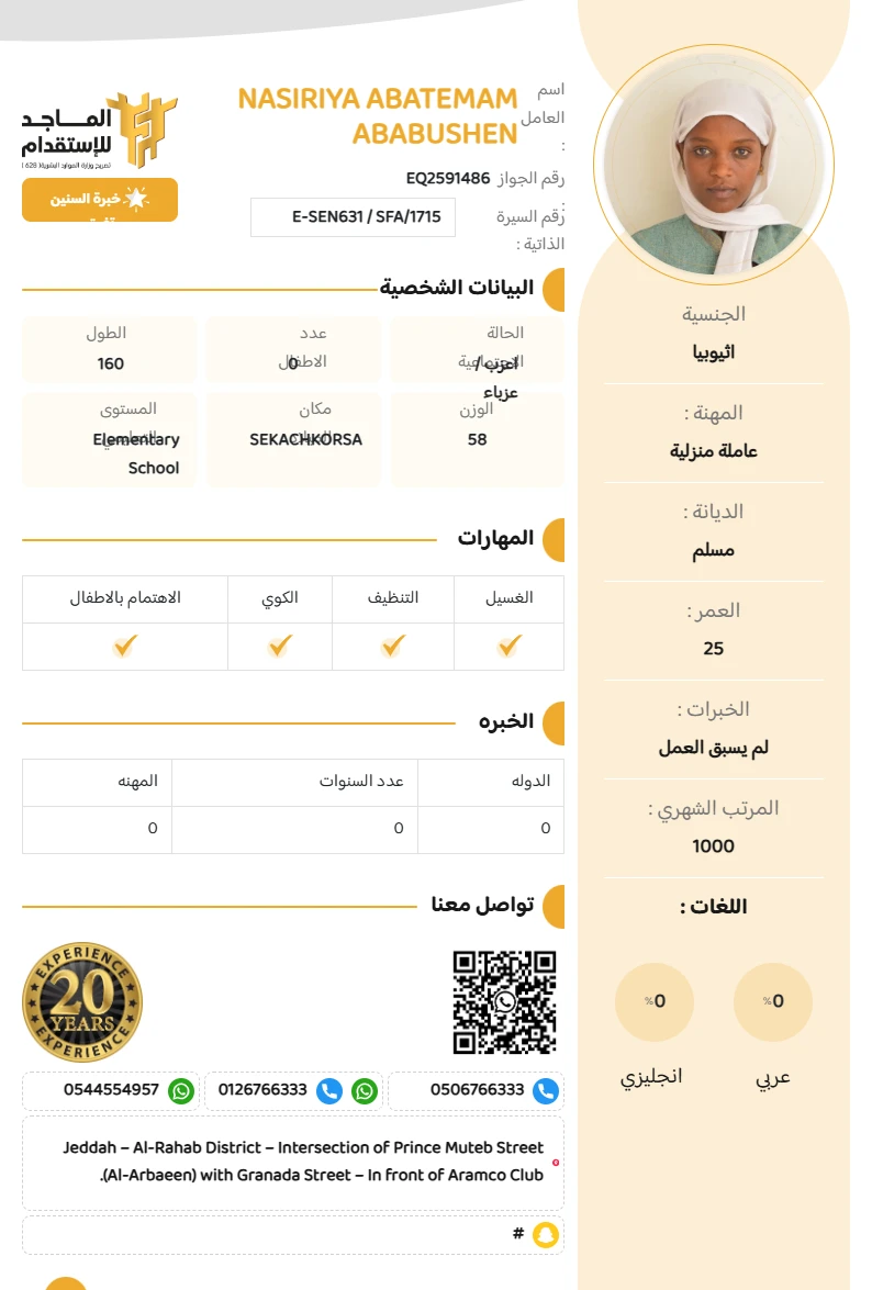 المهنة : عاملة منزلية