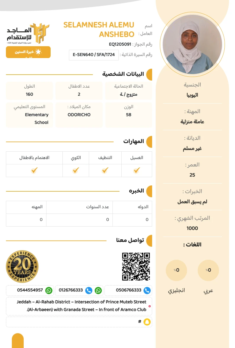 الخبره : لم يسبق العمل