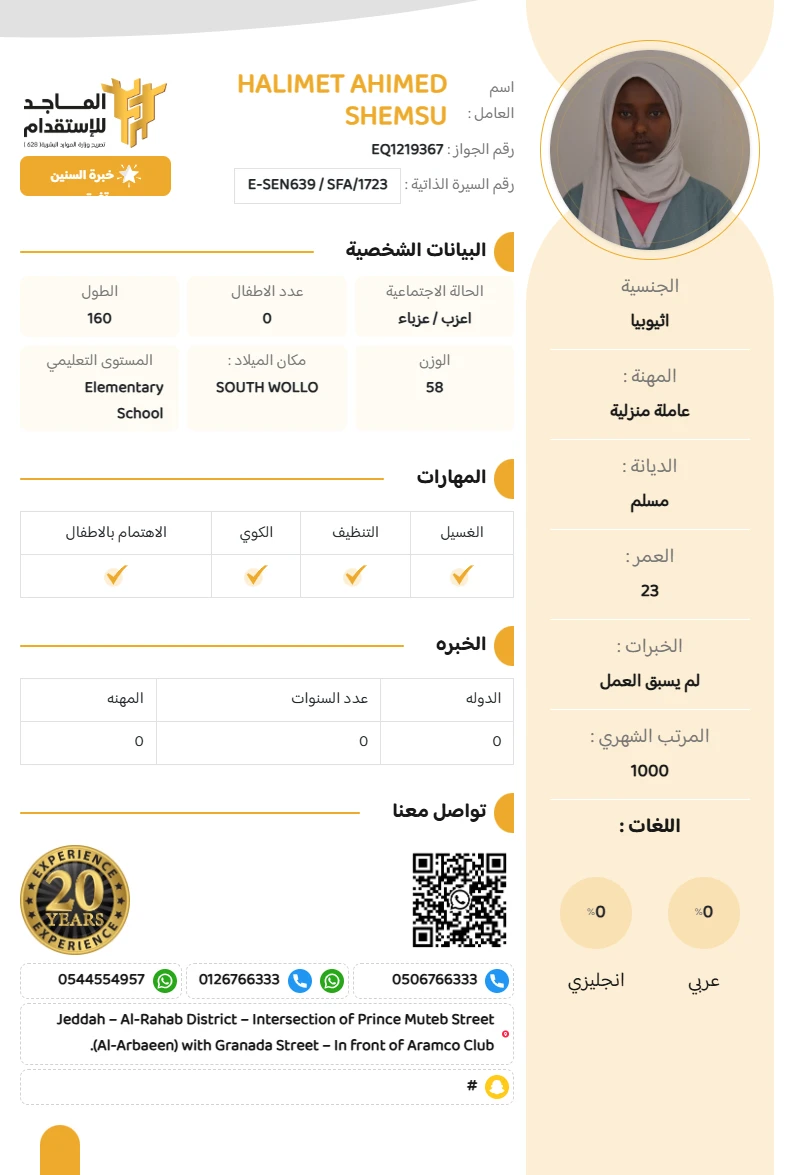 الجنسية : اثيوبيا