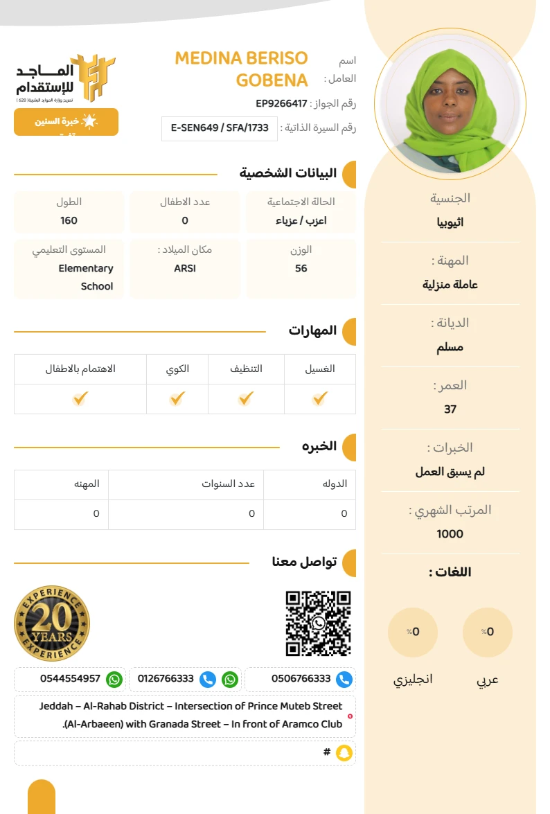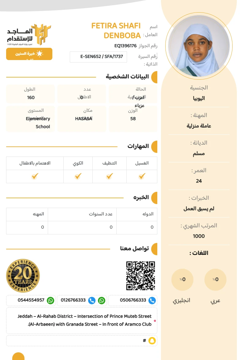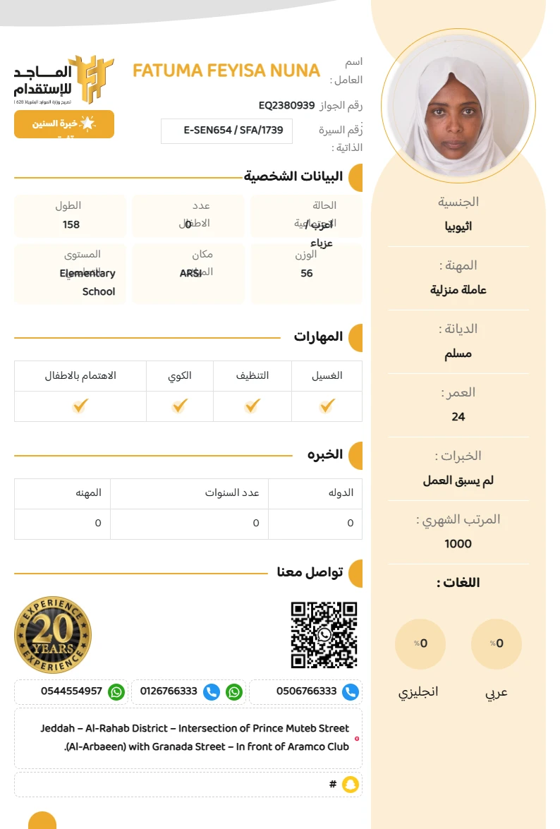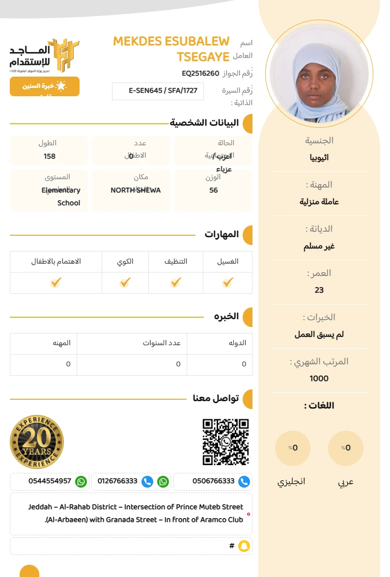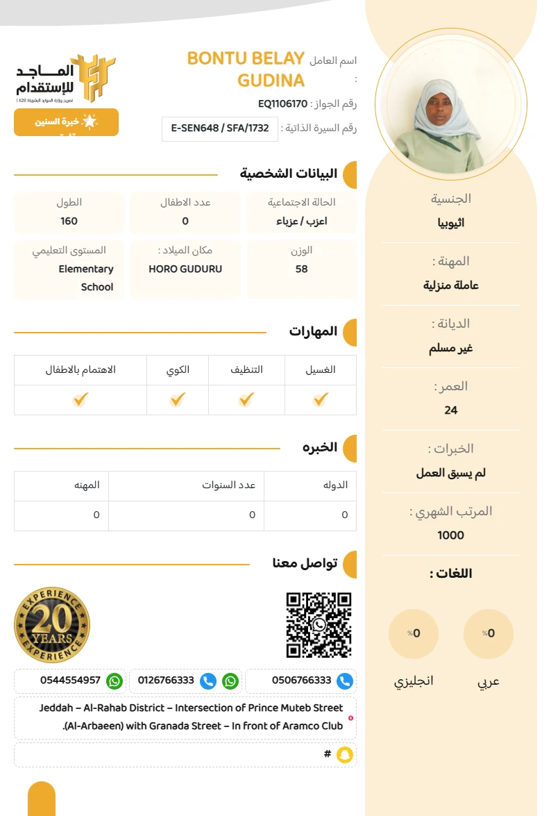 المهنة : عاملة منزلية