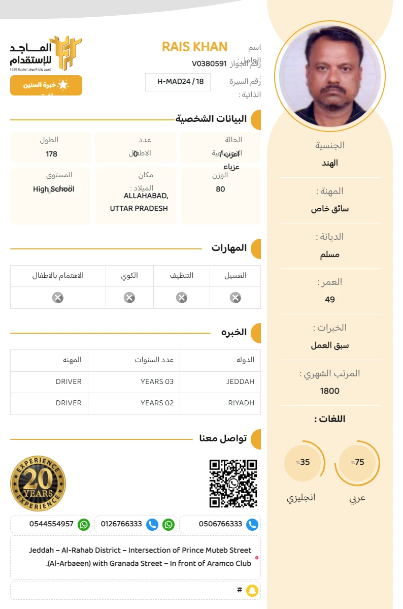 المهنة : سائق خاص