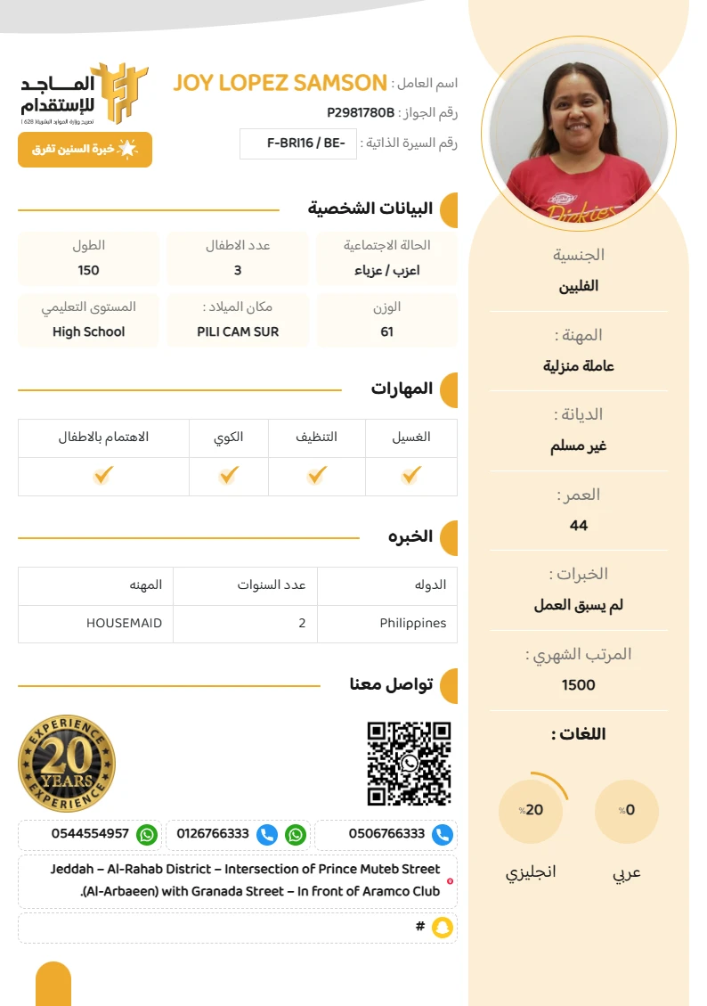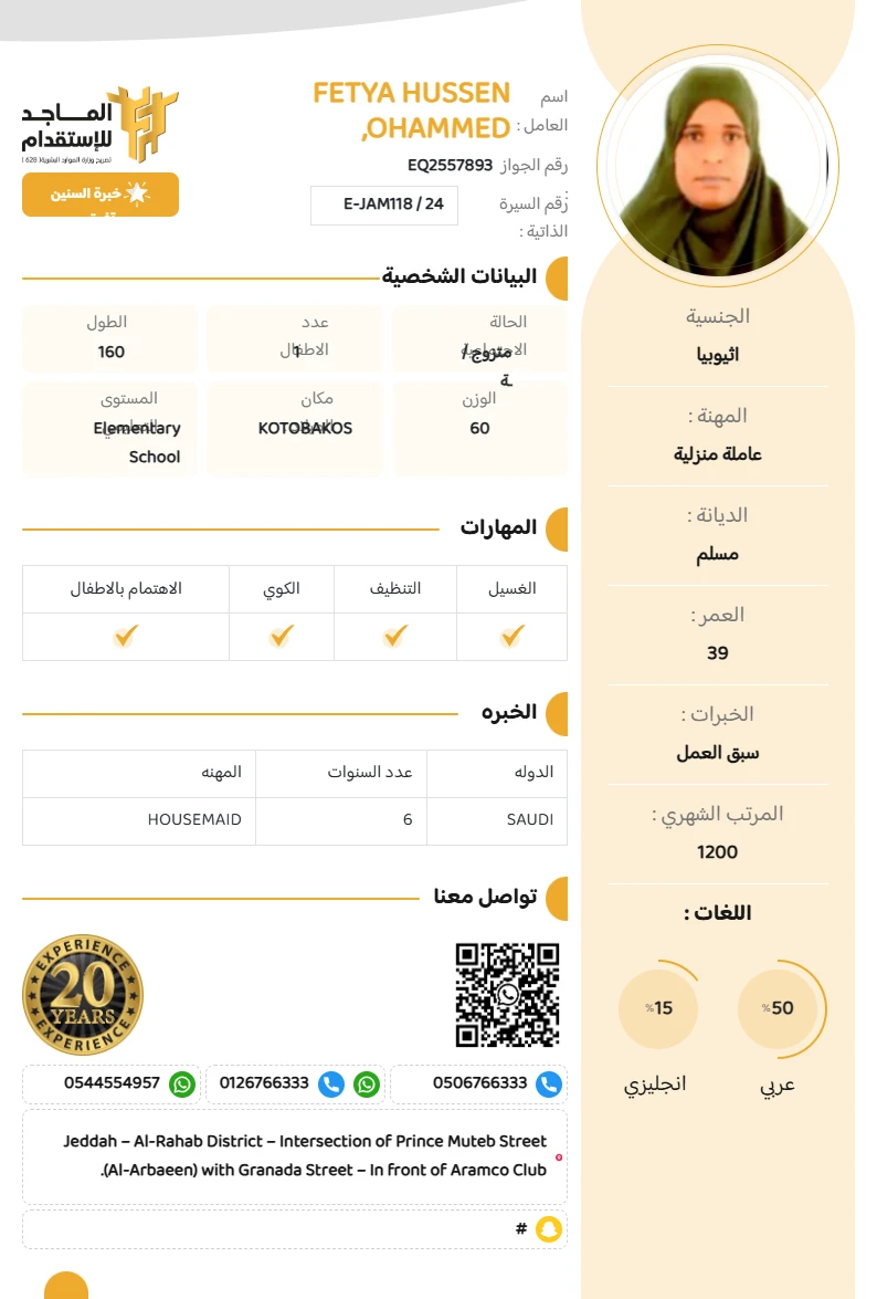 تنويه : يتم سداد تكاليف الاستقدام عن طريق منصة مساند