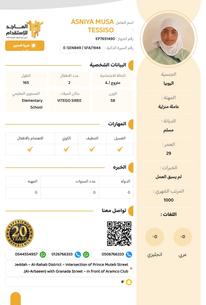 المهنة : عاملة منزلية