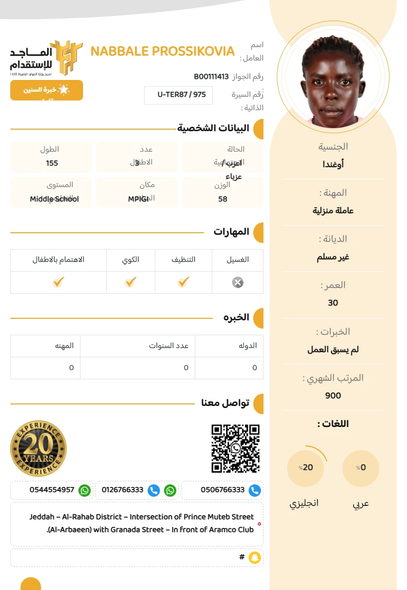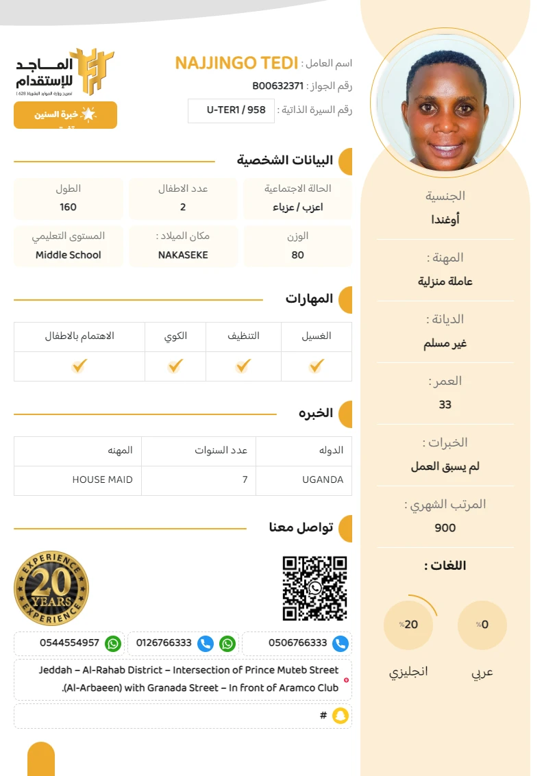 المهنة : عاملة منزلية
