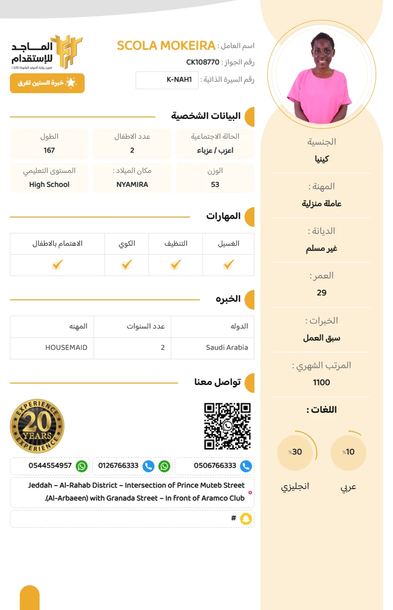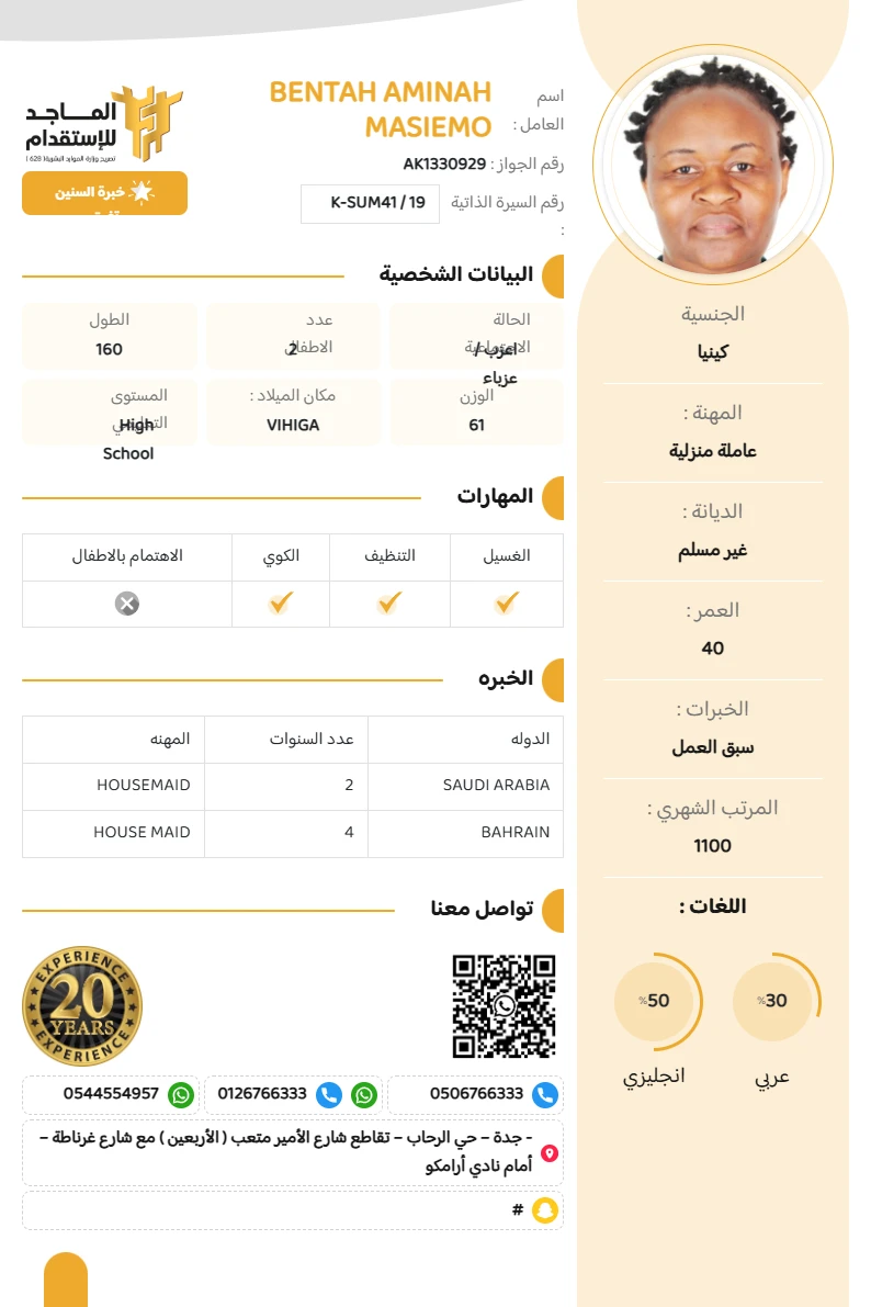 المهنة : عاملة منزلية