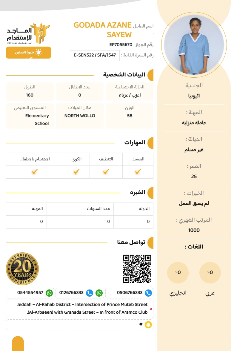 الخبره : لم يسبق العمل