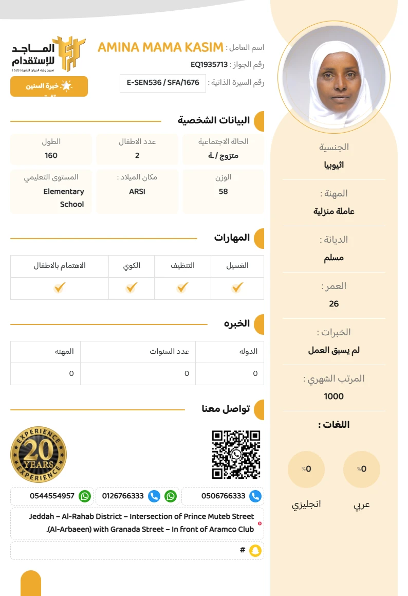 تنويه : يتم سداد تكاليف الاستقدام عن طريق منصة مساند