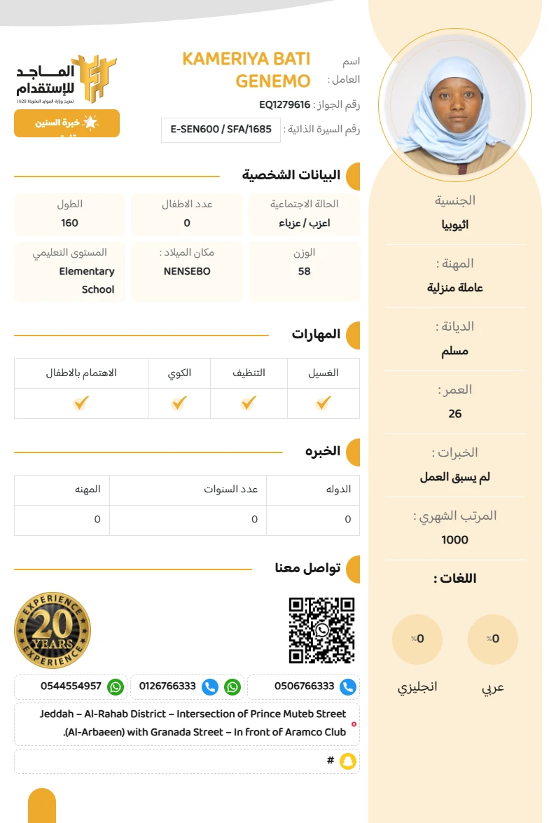 المهنة : عاملة منزلية