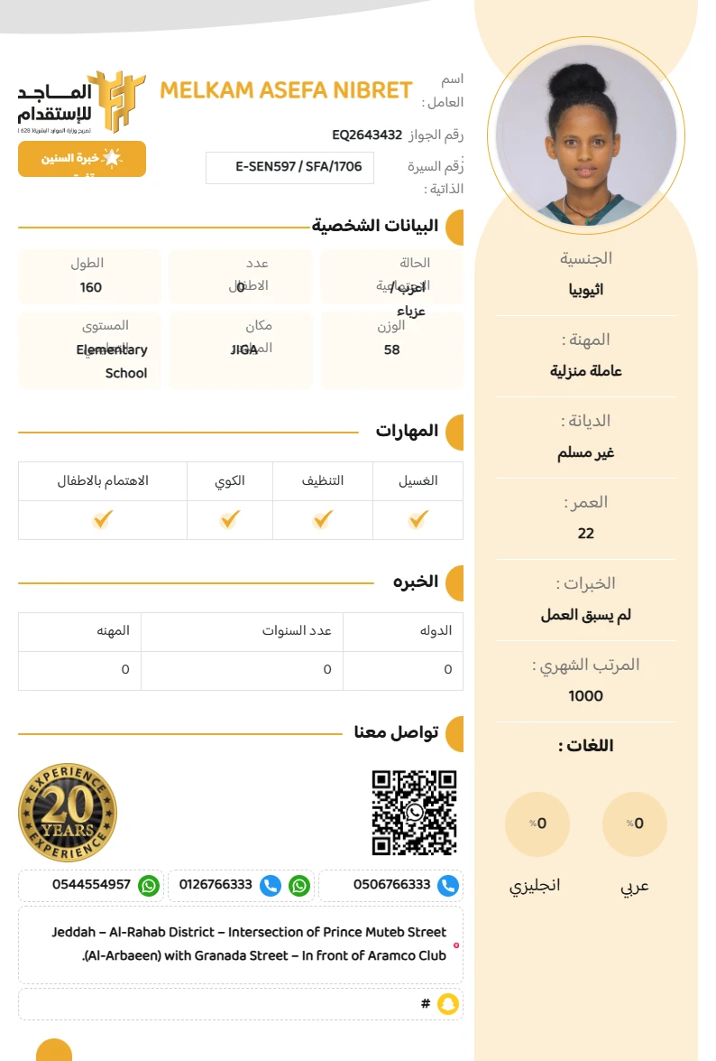 الخبره : لم يسبق العمل