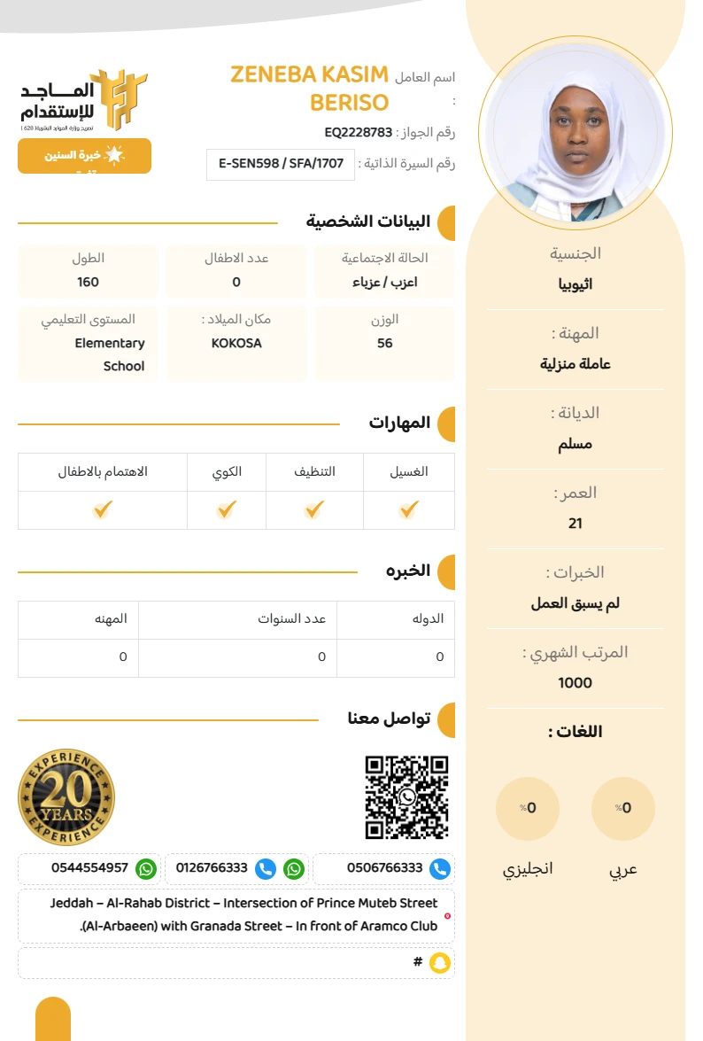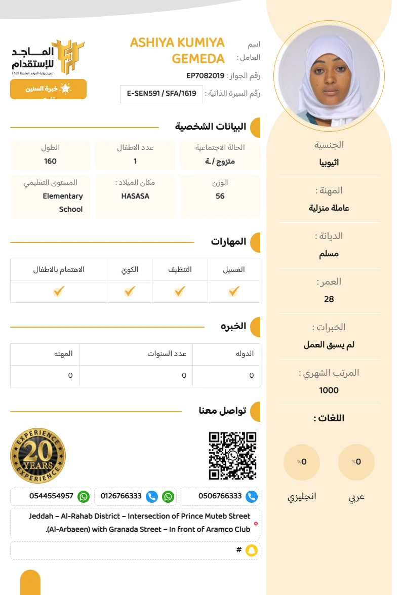 الجنسية : اثيوبيا
