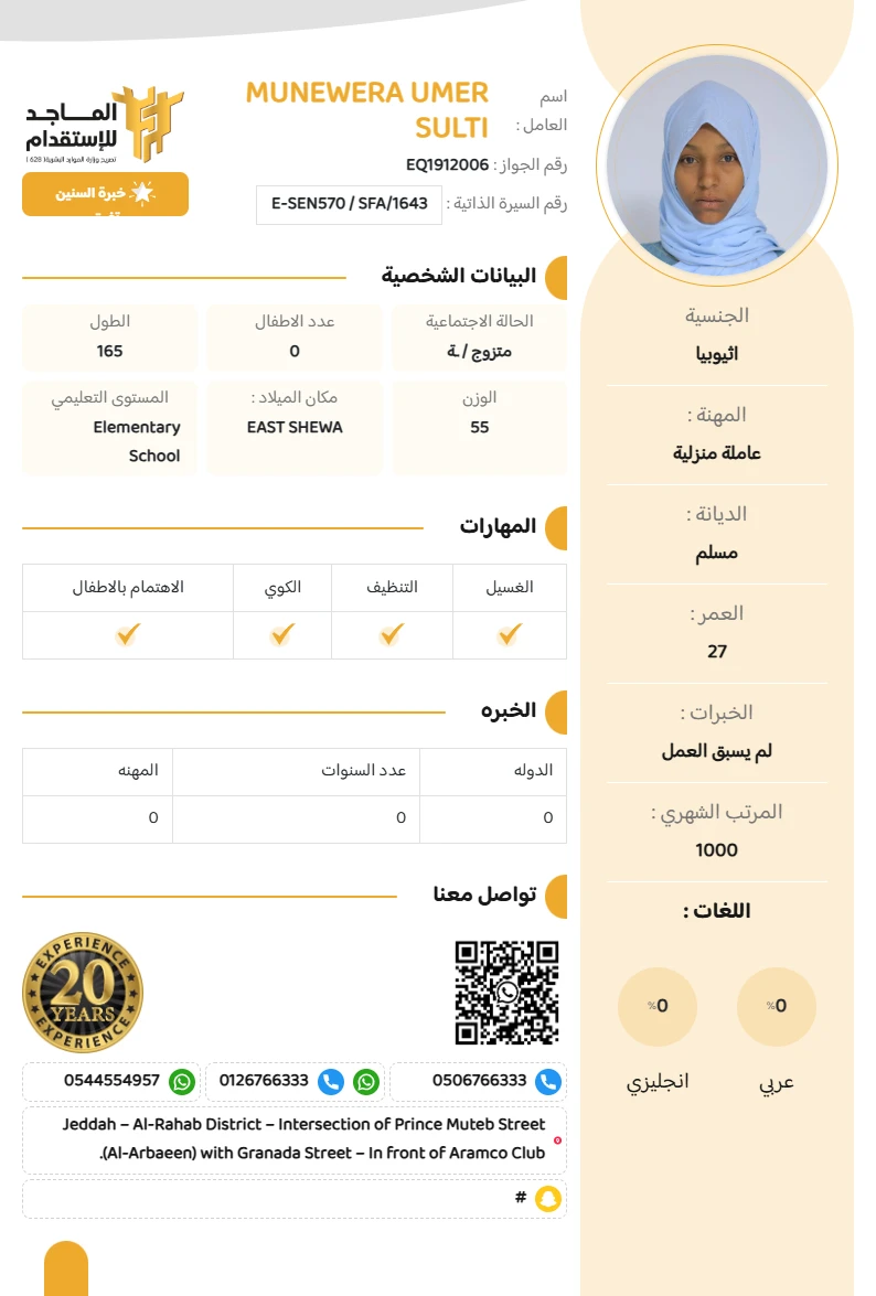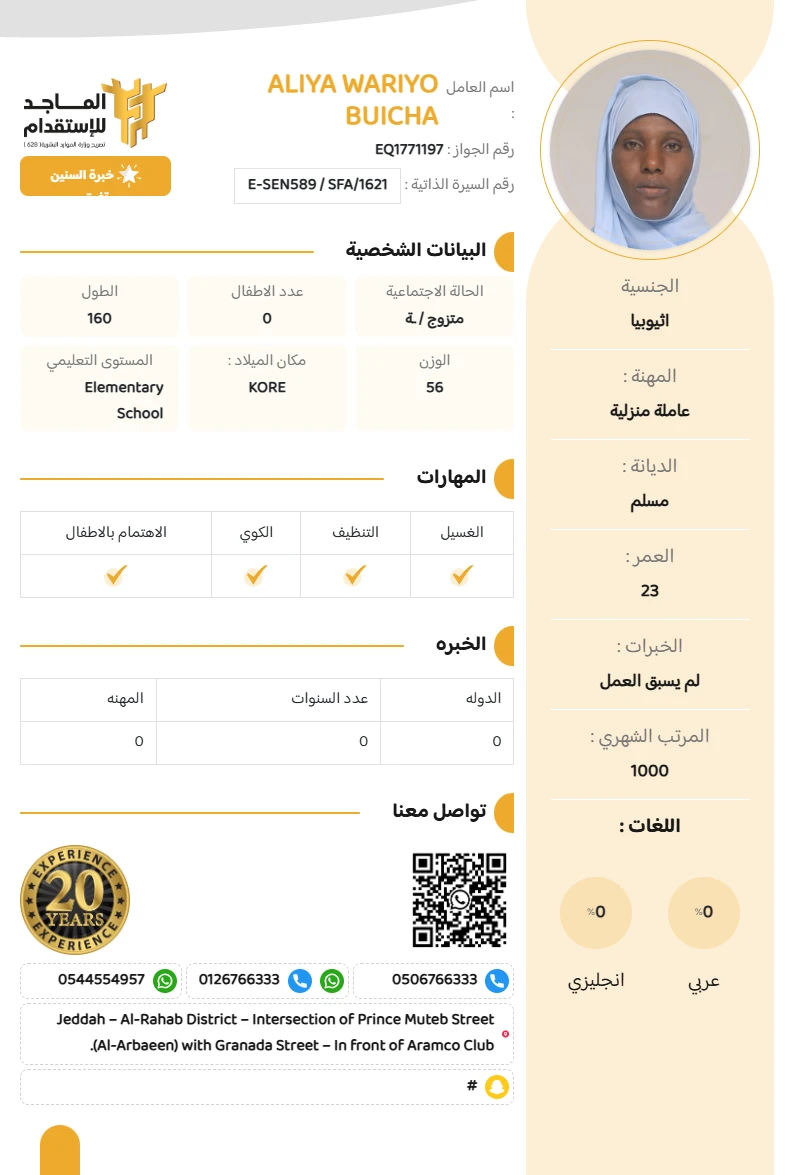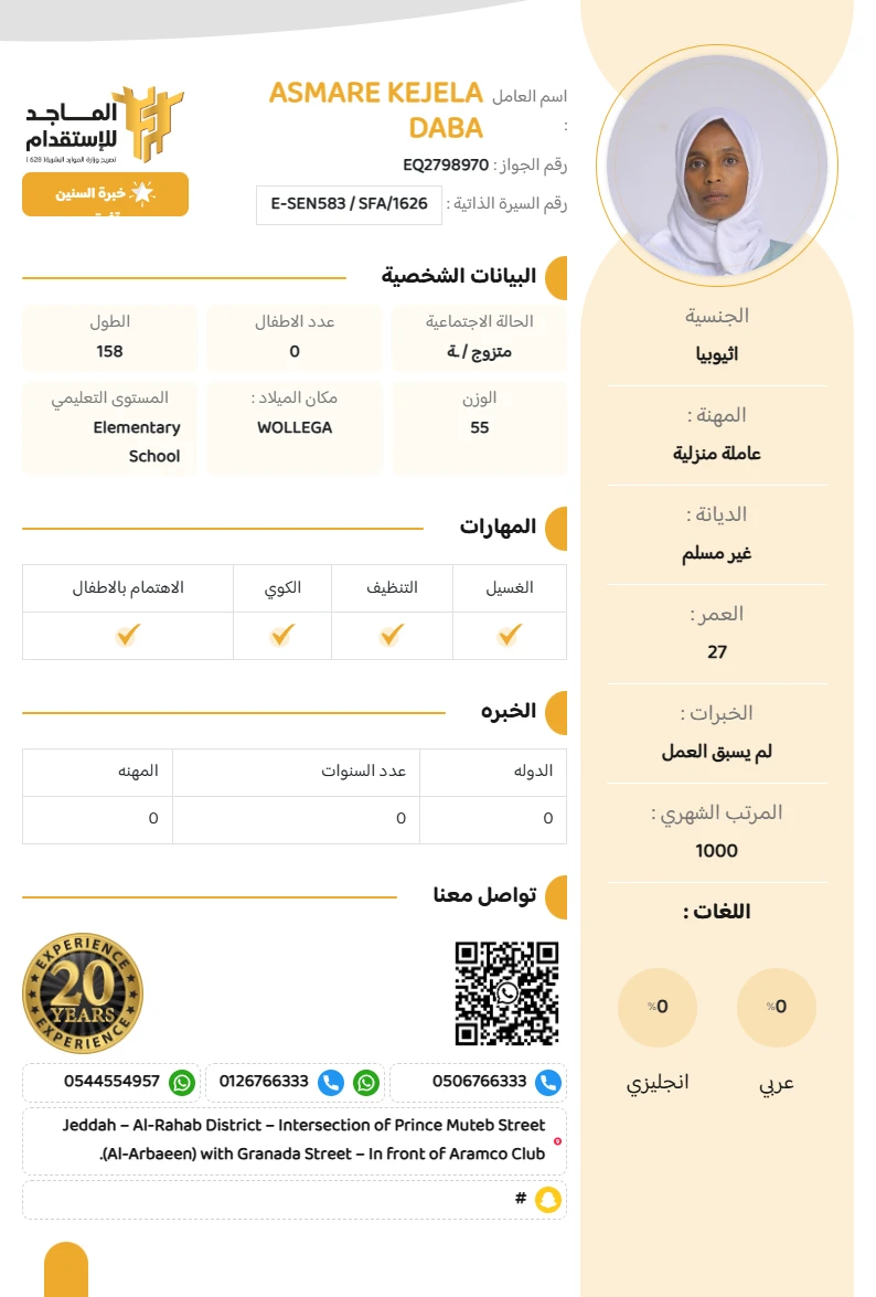 المهنة : عاملة منزلية