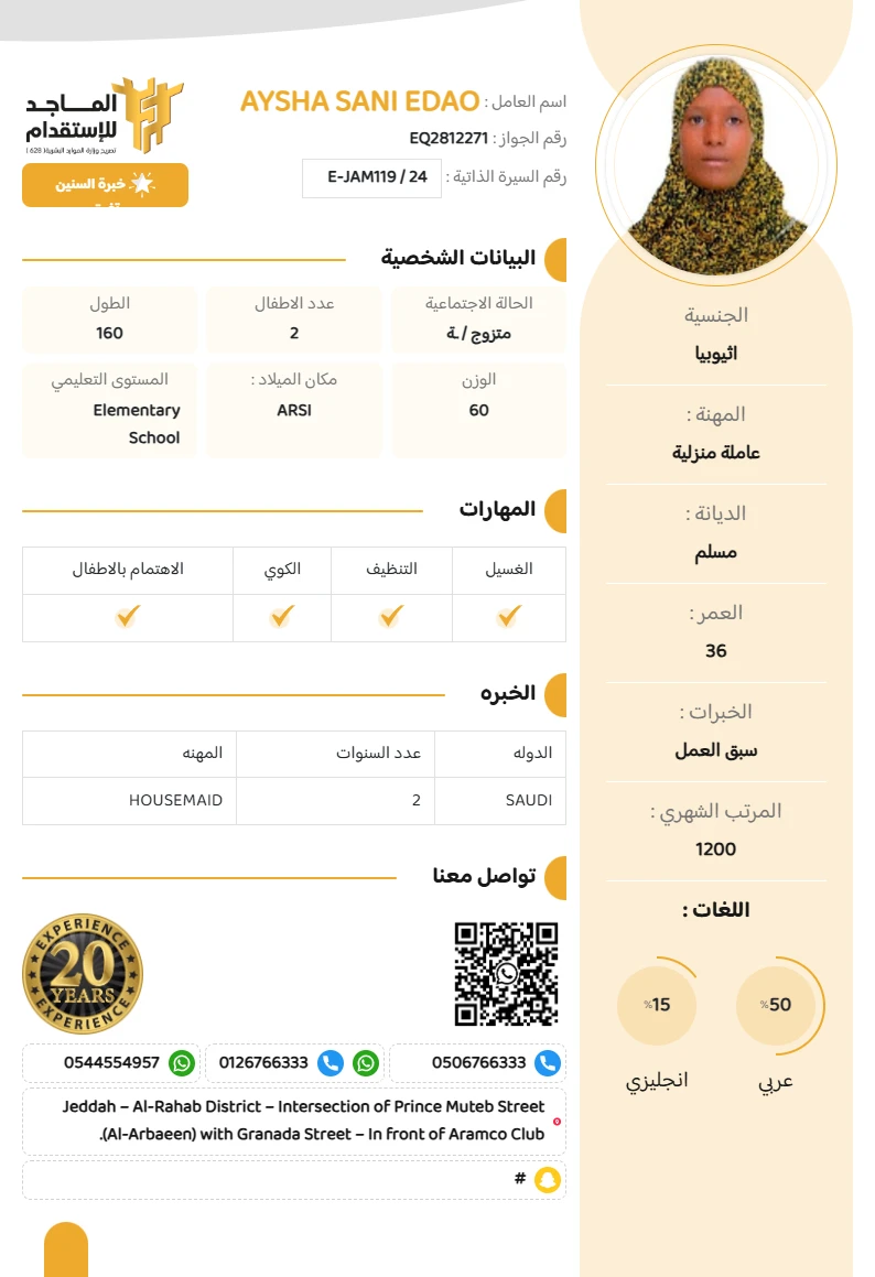 المهنة : عاملة منزلية