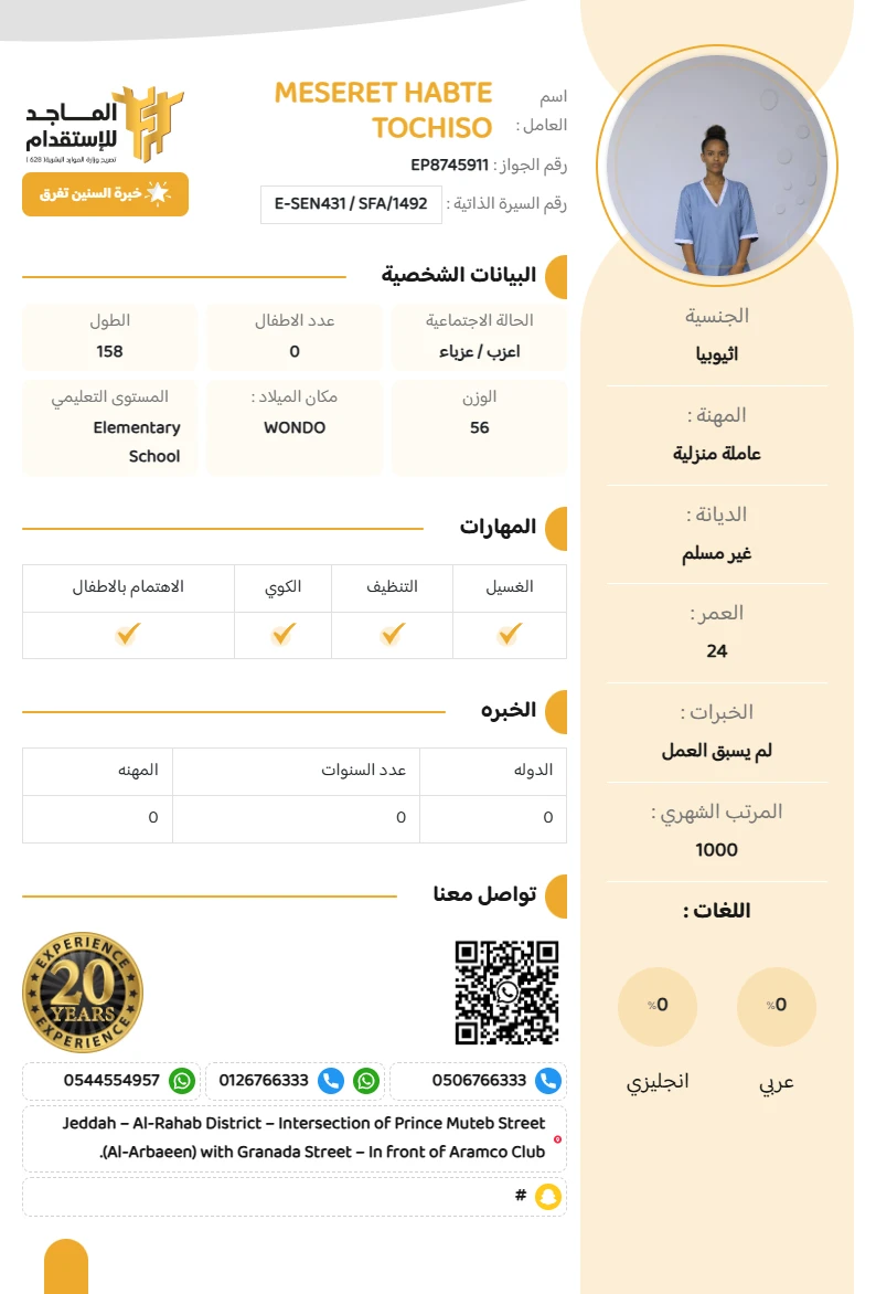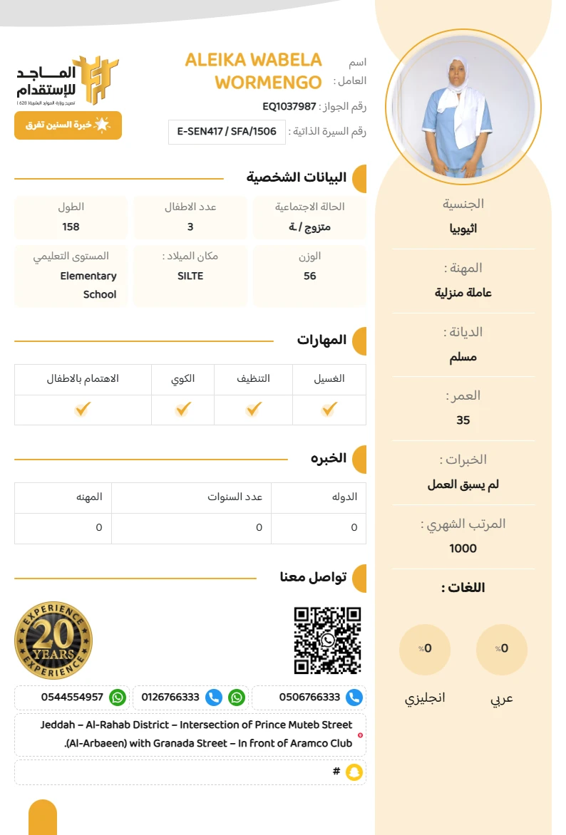 المهنة : عاملة منزلية