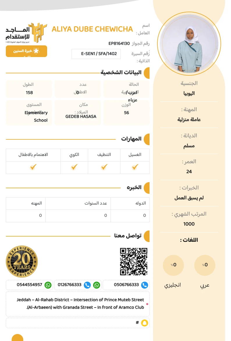 تنويه : يتم سداد تكاليف الاستقدام عن طريق منصة مساند