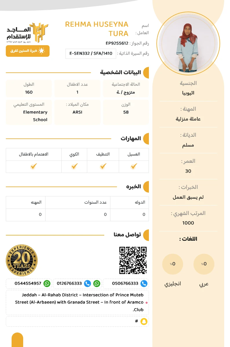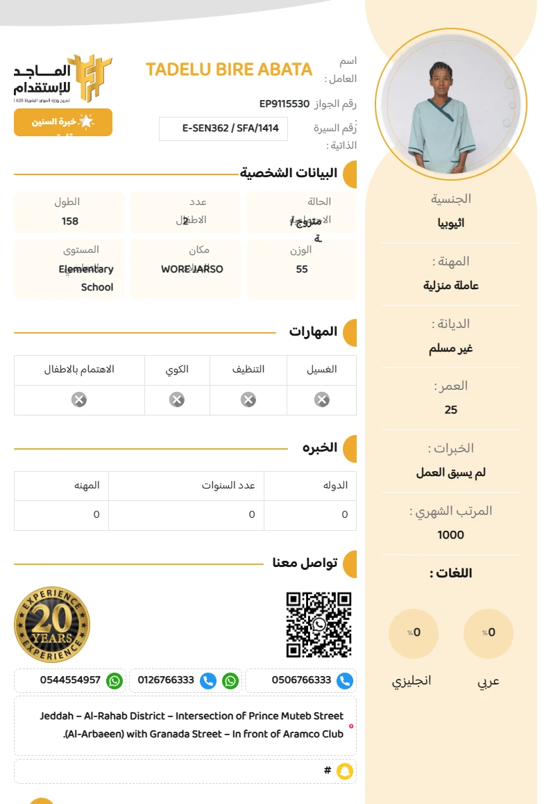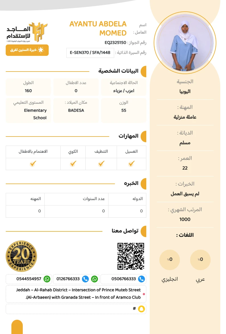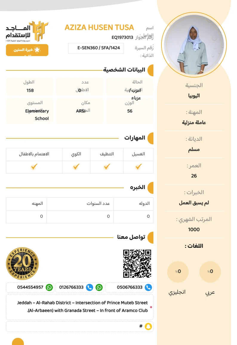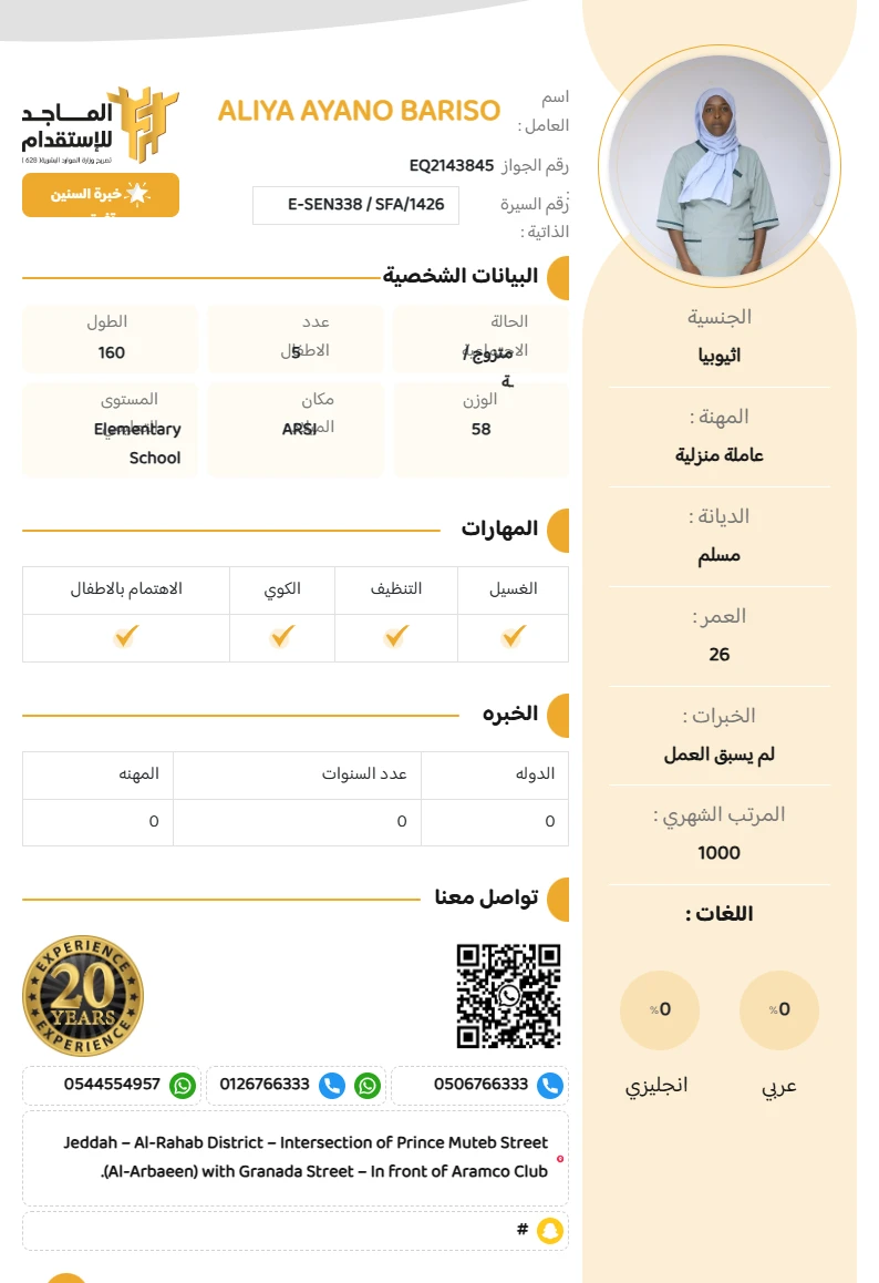 المهنة : عاملة منزلية