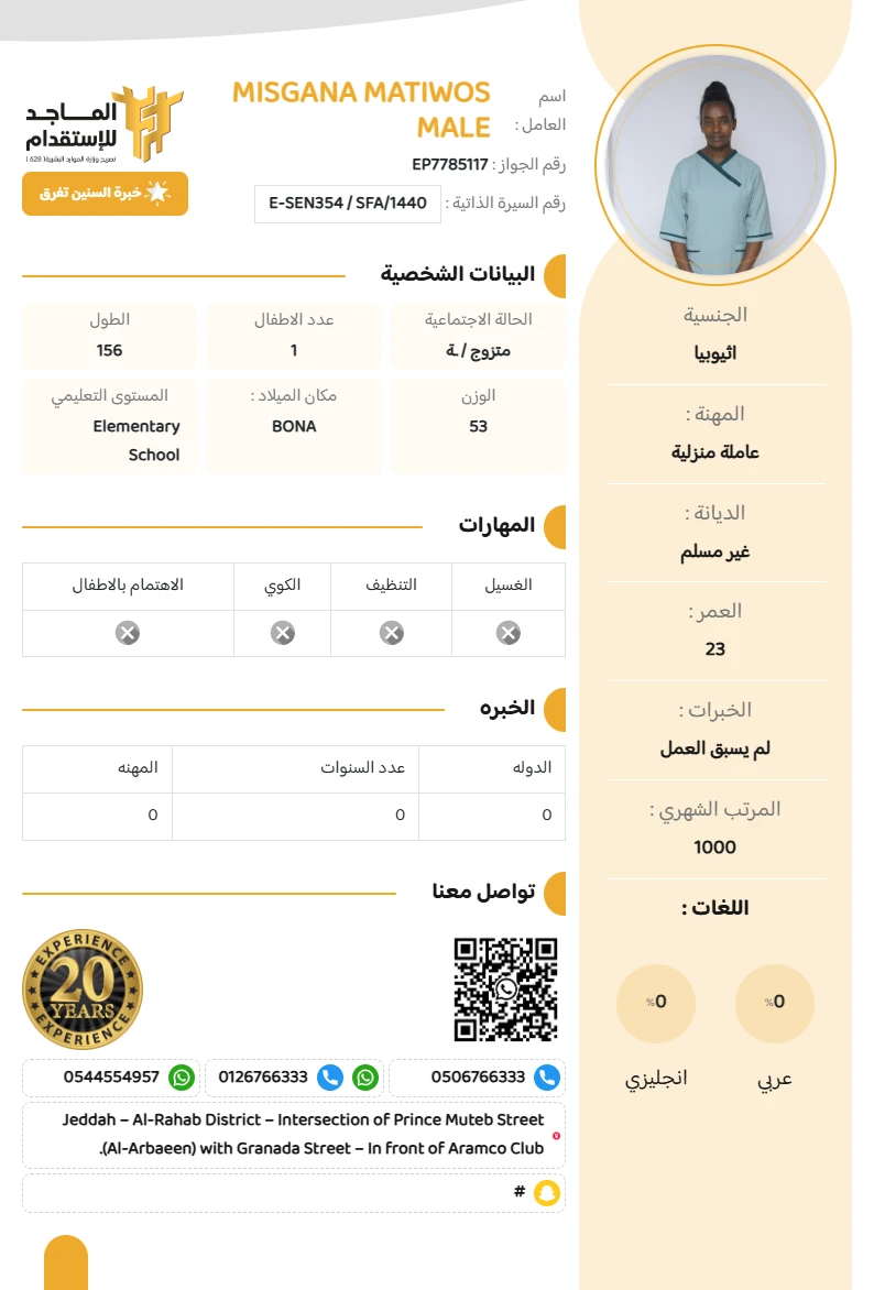 الجنسية : اثيوبيا