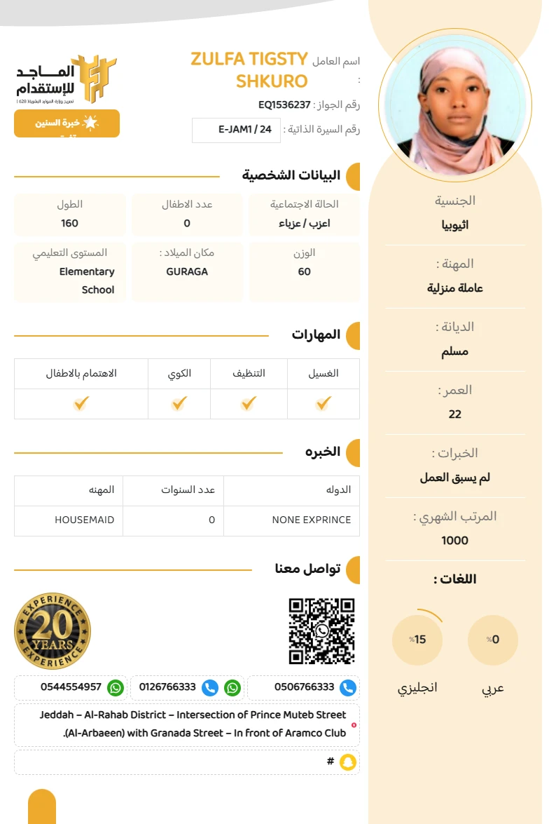 الخبره : لم يسبق العمل