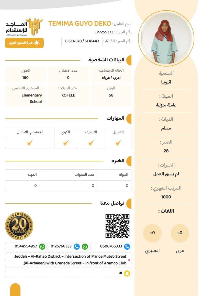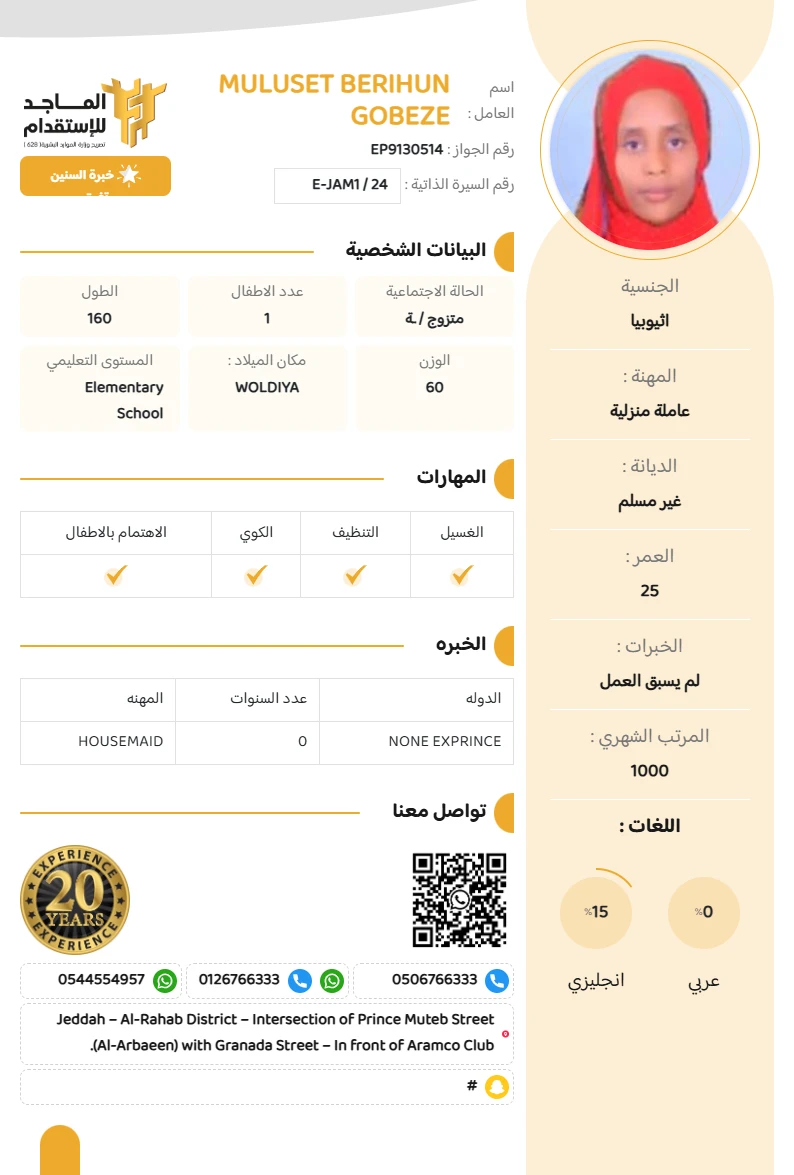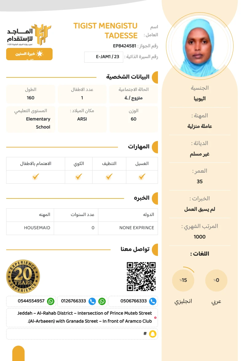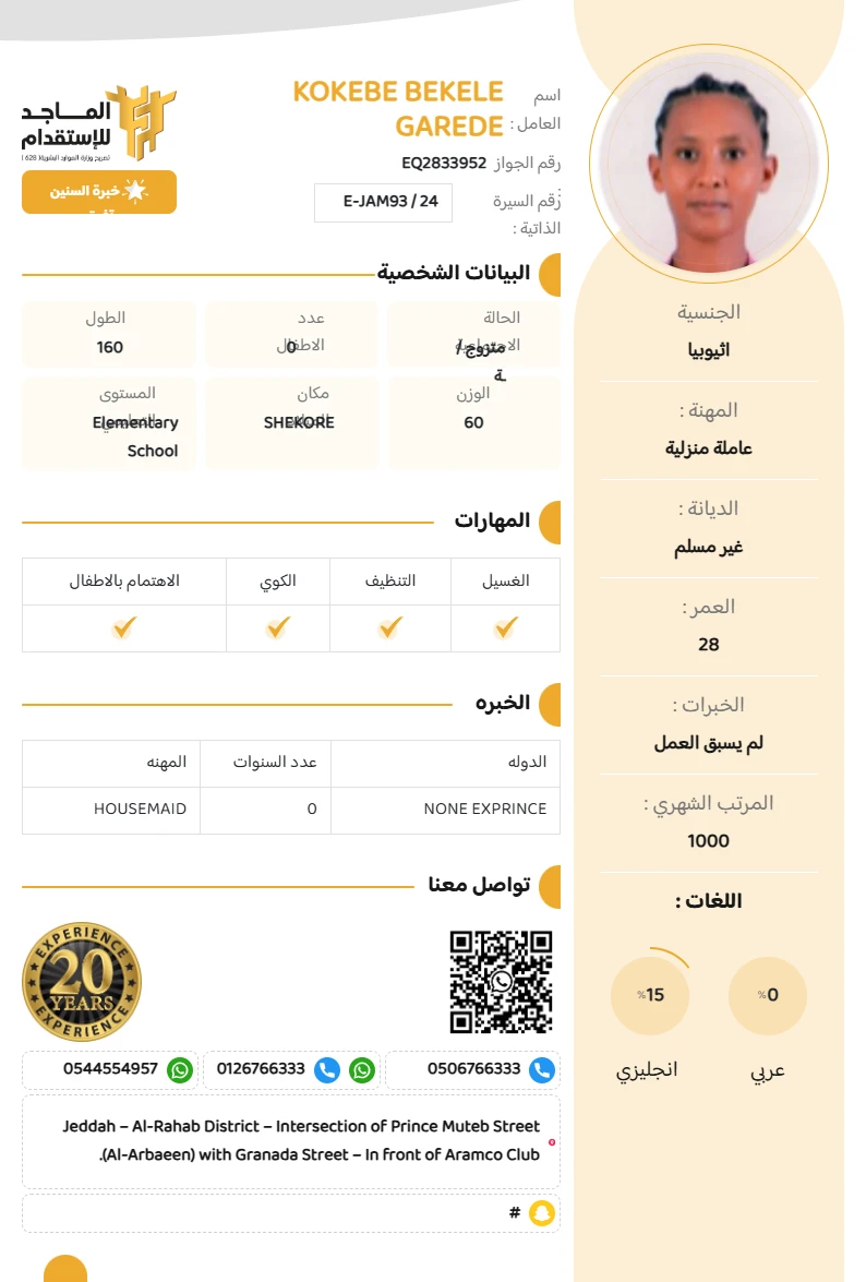 المهنة : عاملة منزلية