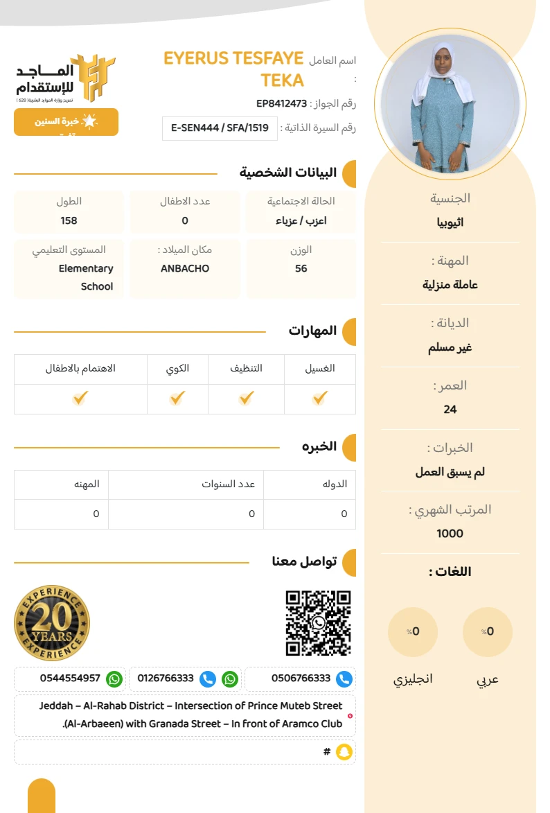 المهنة : عاملة منزلية