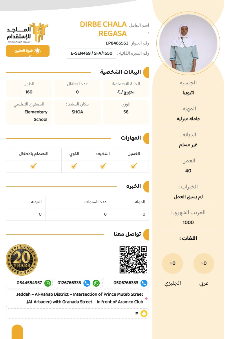 تنويه : يتم سداد تكاليف الاستقدام عن طريق منصة مساند