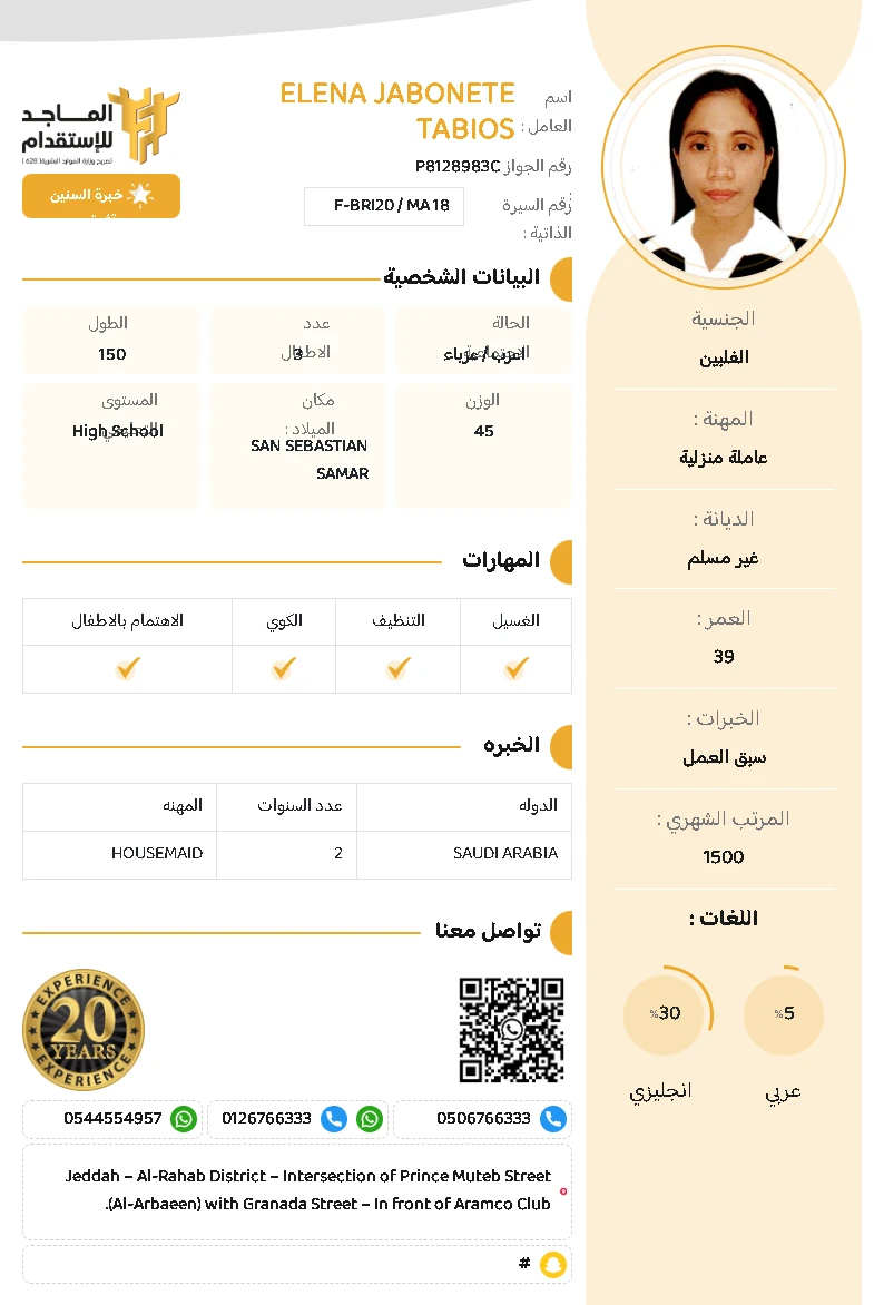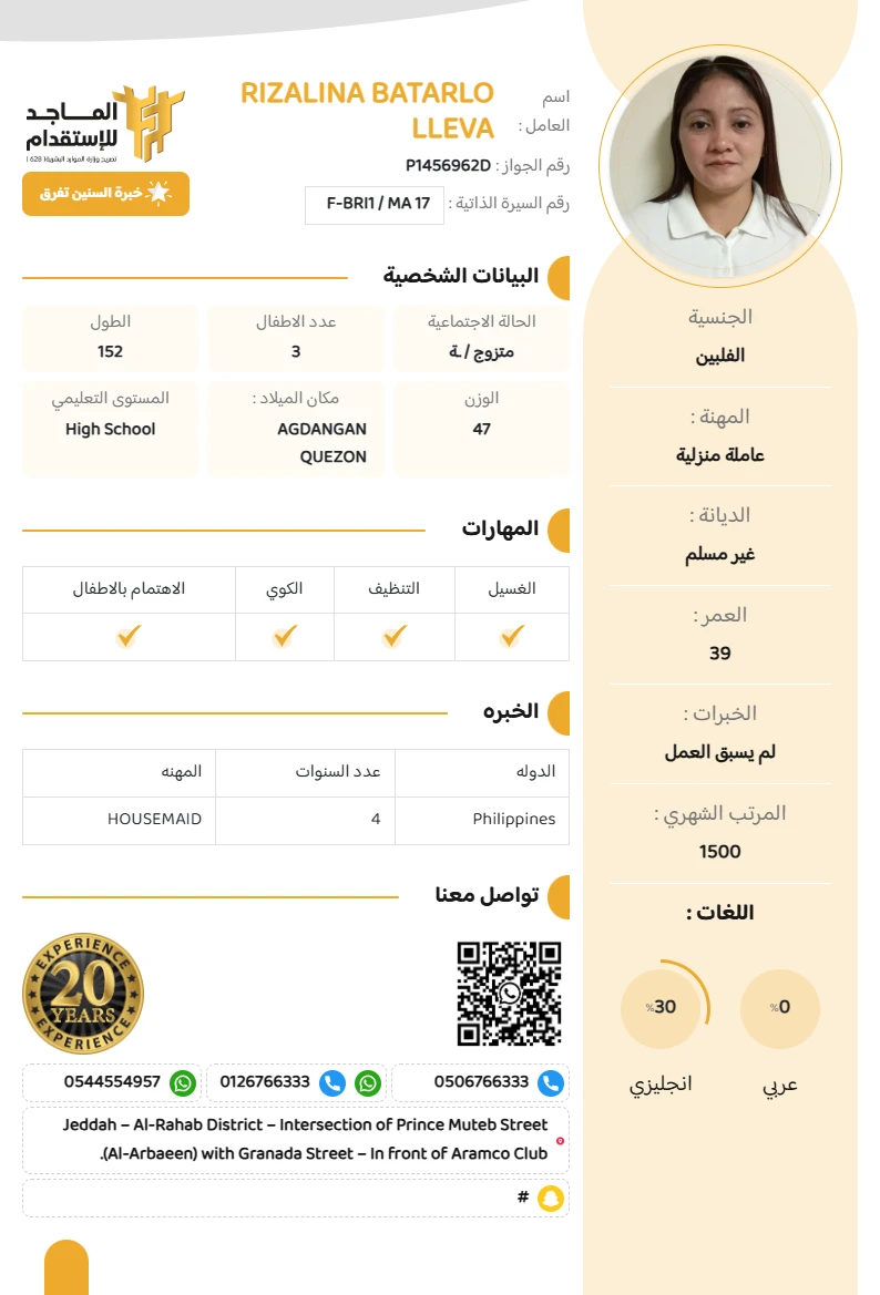 المهنة : عاملة منزلية