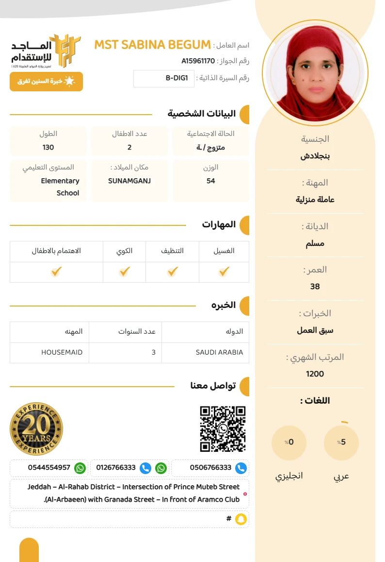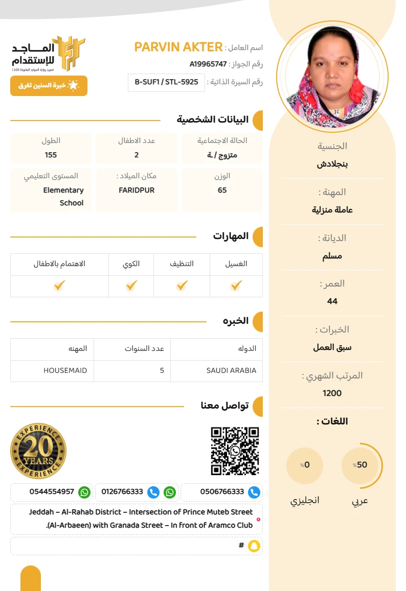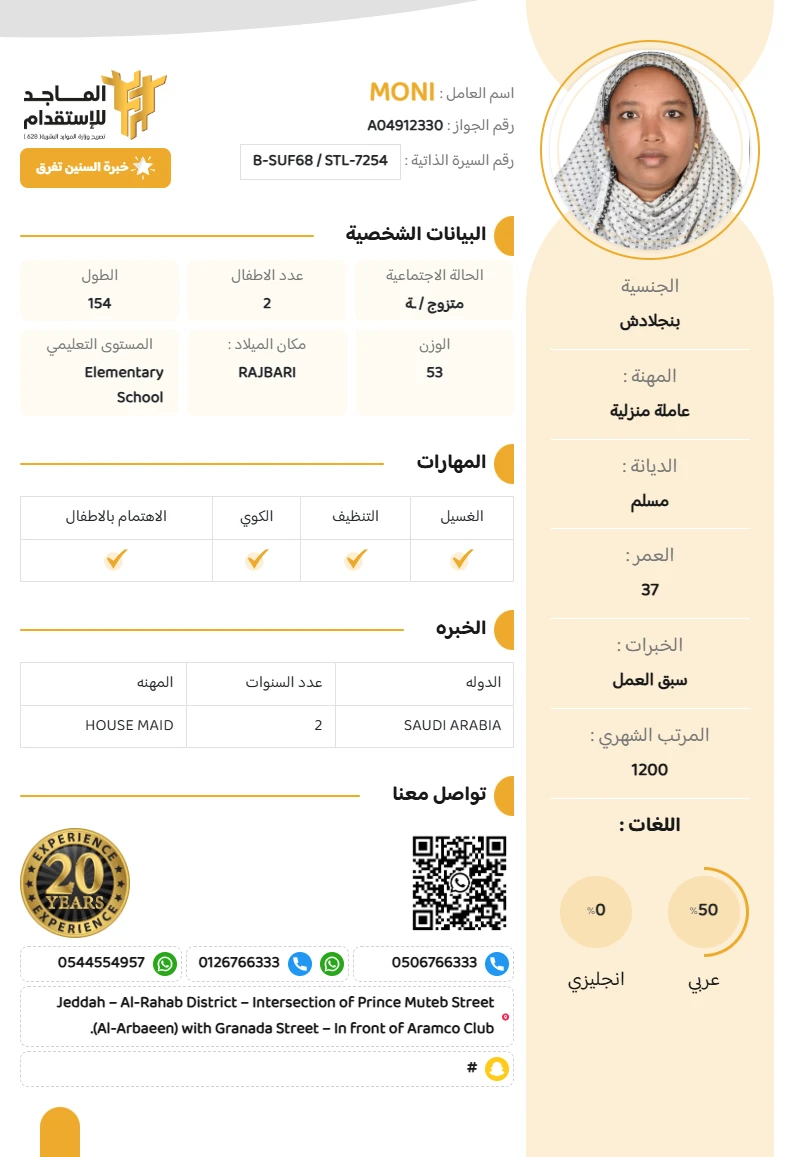 المهنة : عاملة منزلية