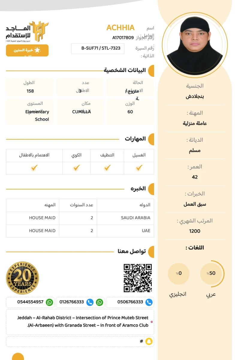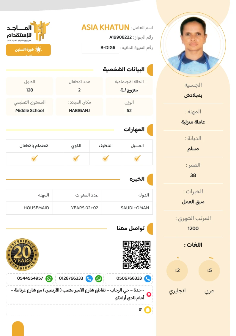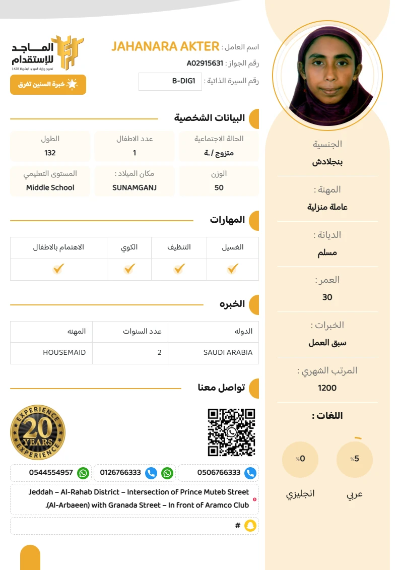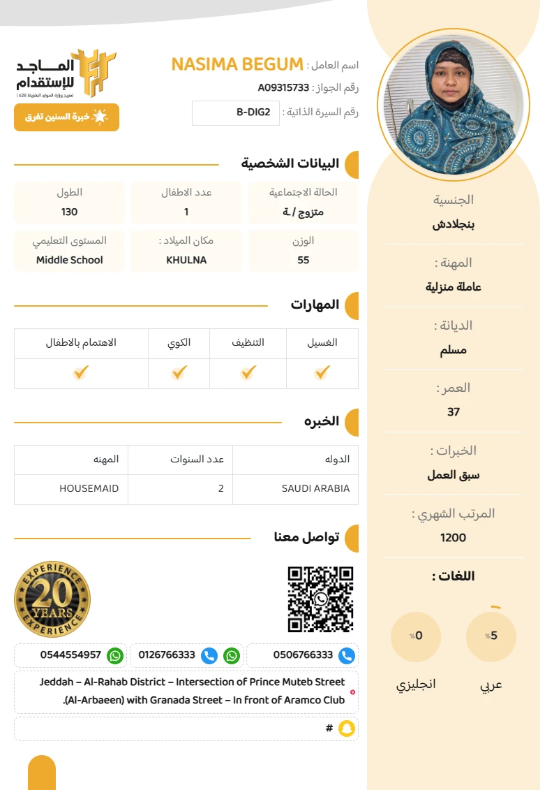 المهنة : عاملة منزلية