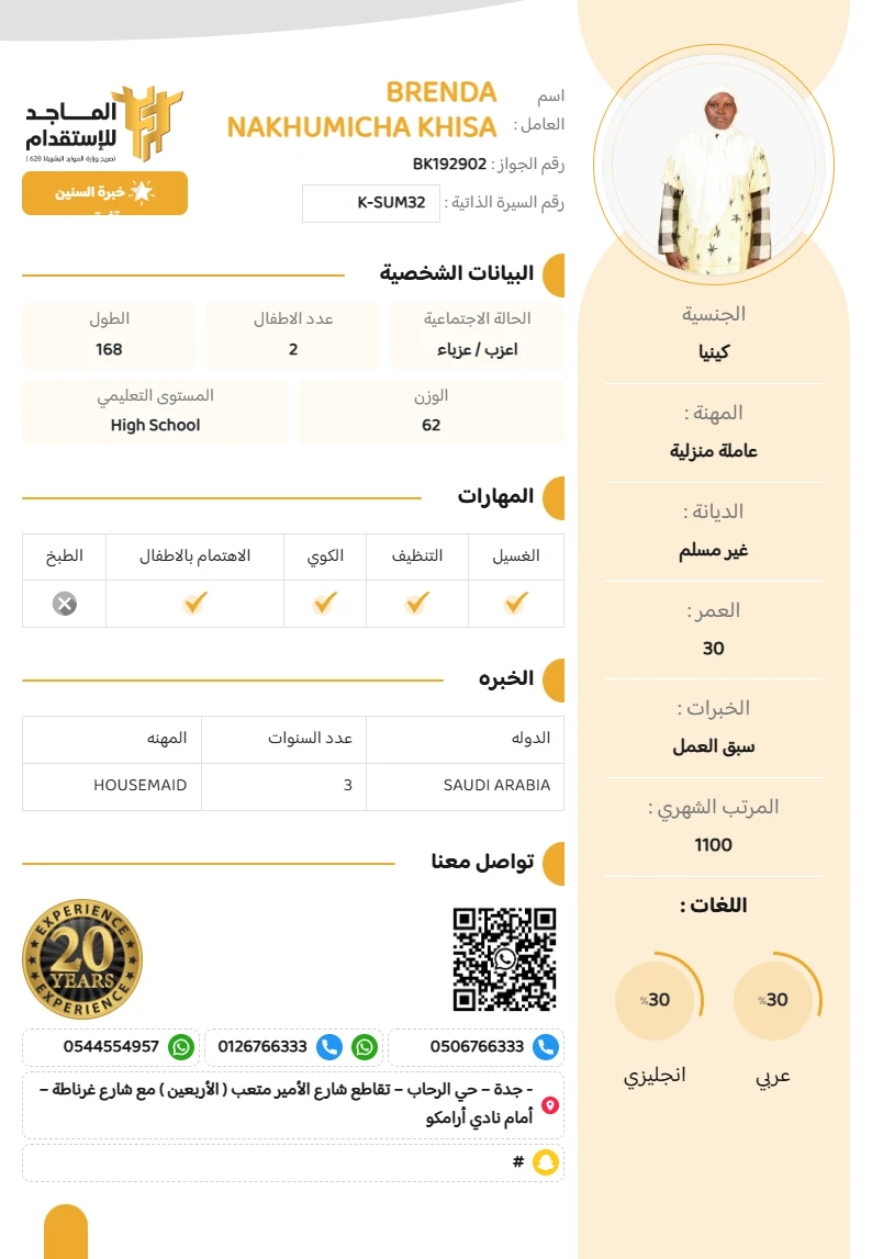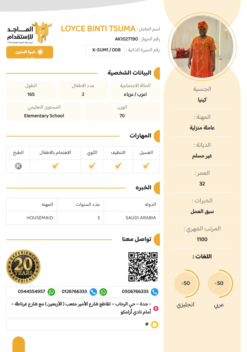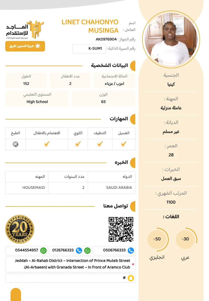 Notice : Note: Recruitment costs are paid through the Musaned platform.