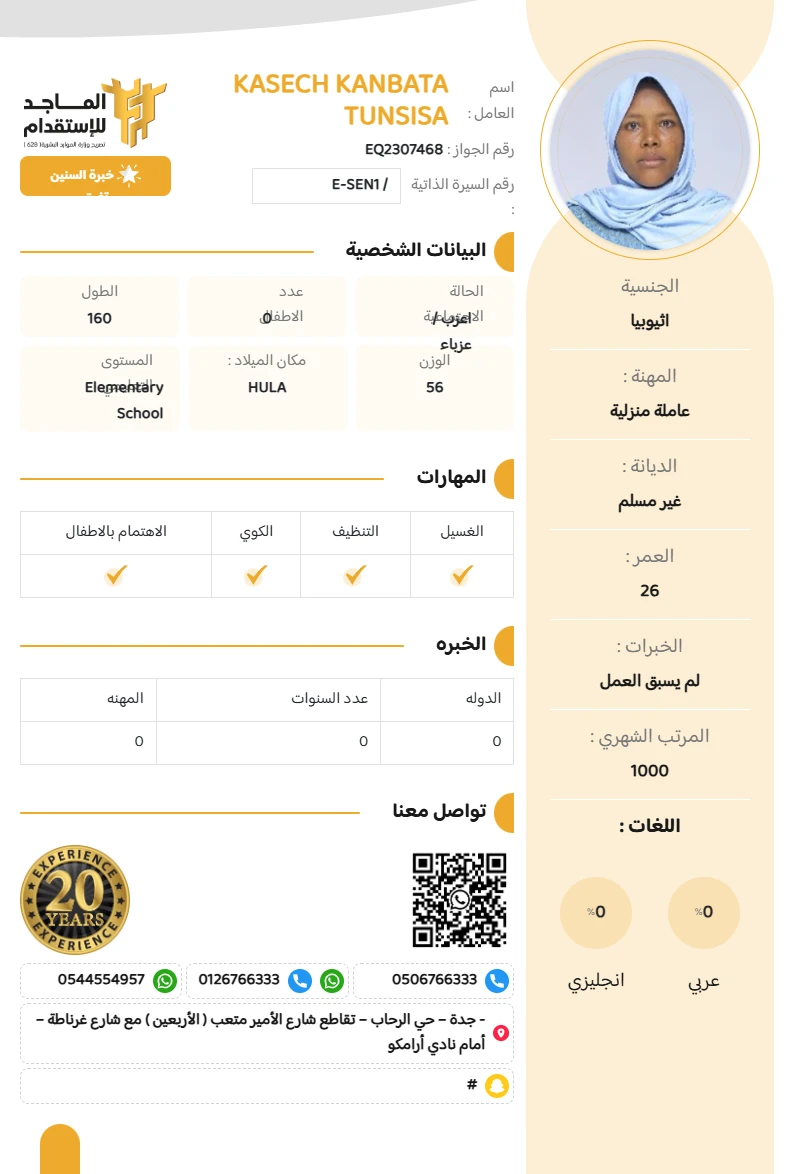 الخبره : لم يسبق العمل